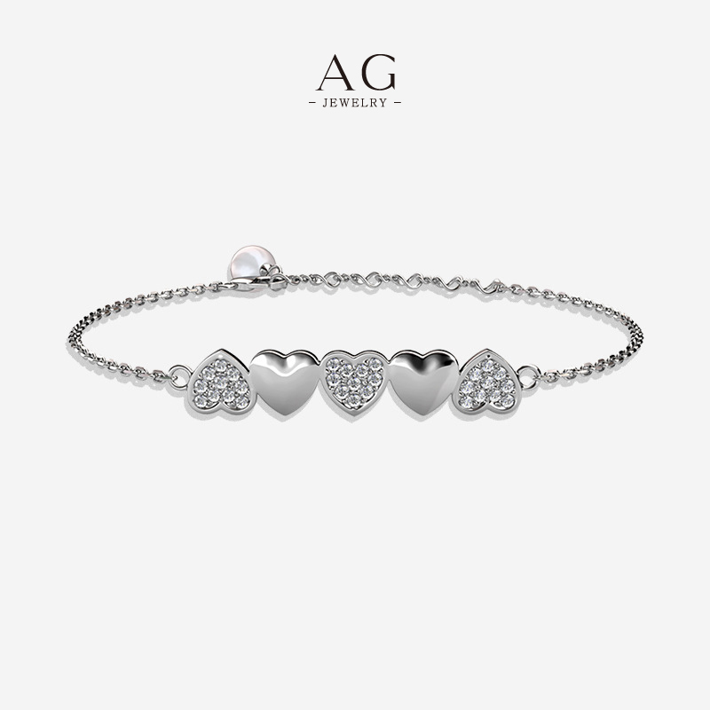 AG Zirconia And Polished Heart Alternating Bracelet Romantic Gift Design AGDB0172