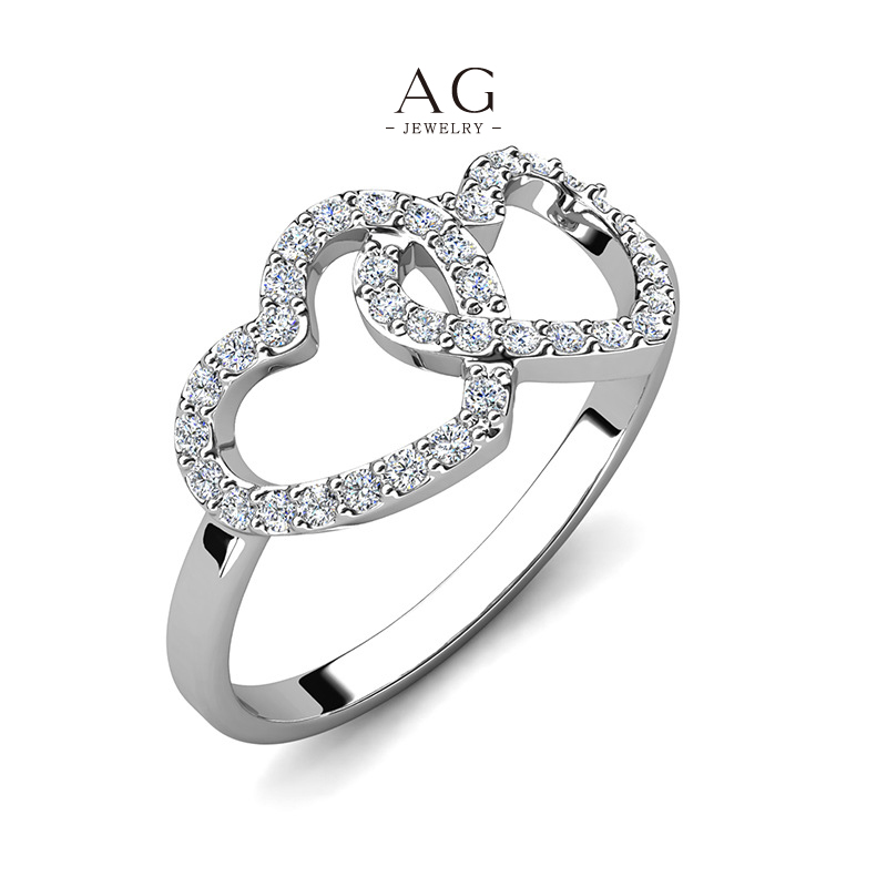 AG Double Heart Ring Couple Matching Jewelry AGDR0161