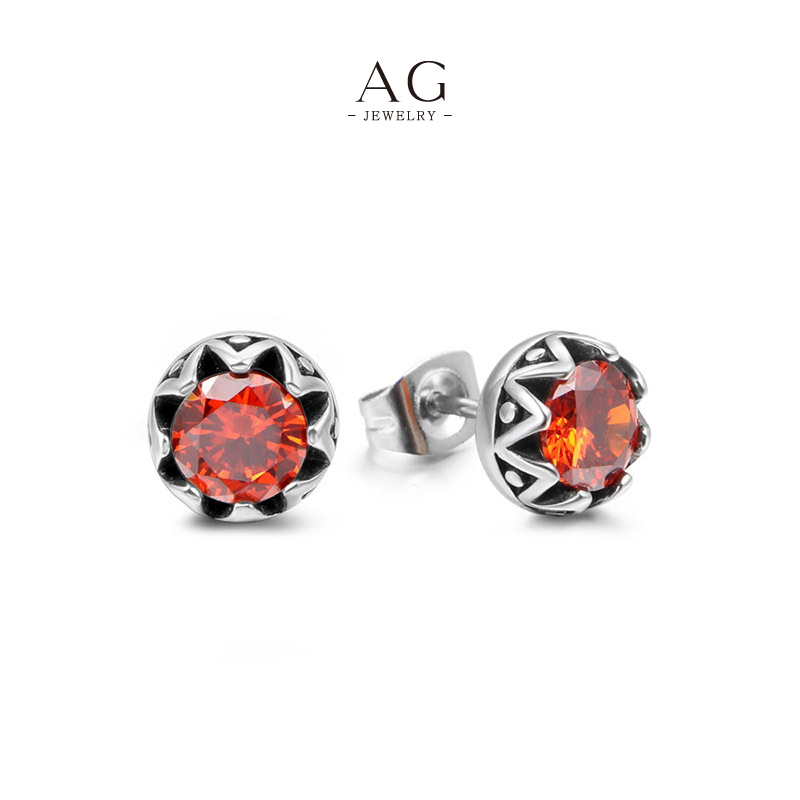AG Men‘s Vintage Black Orange Zirconia Stud Earrings Retro Color Block Line Custom Manufacturer AGCF118