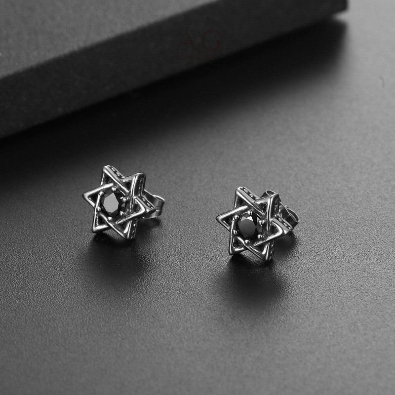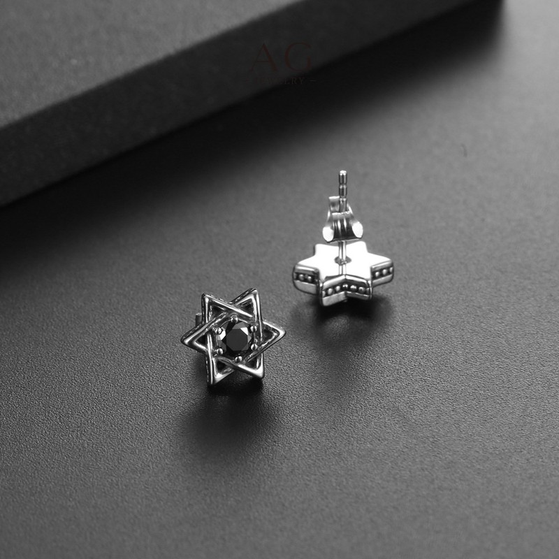AG Men‘s Black Zirconia Stud Earrings Onyx Style Jewelry OEM Service AG JEWELRY AGCF151