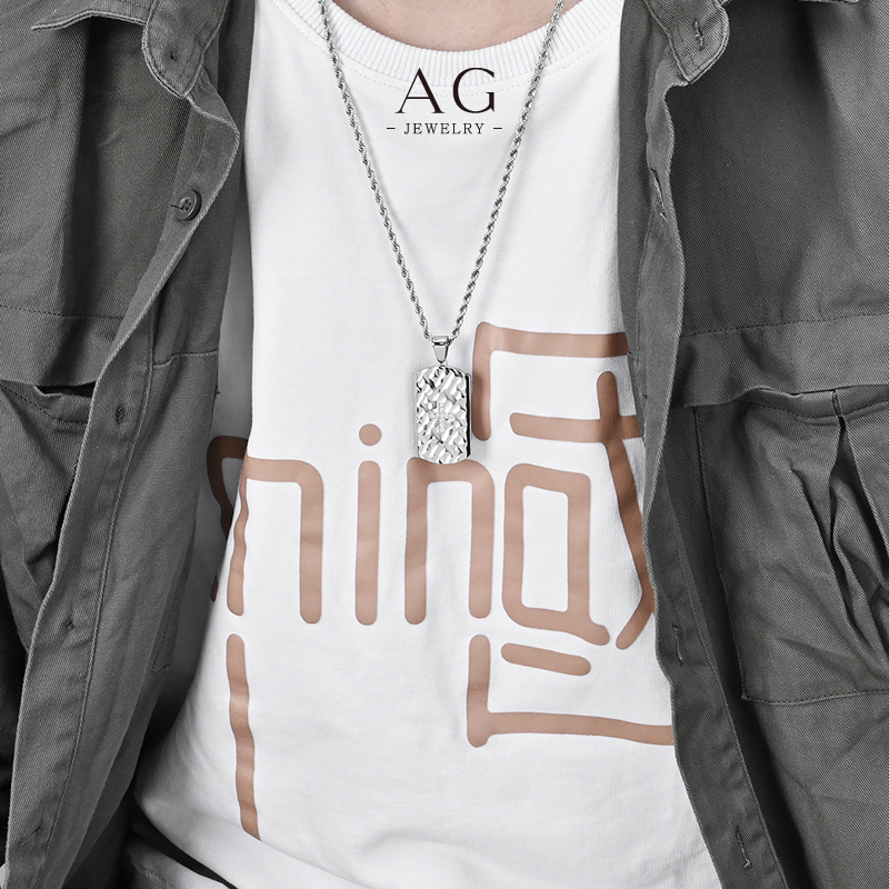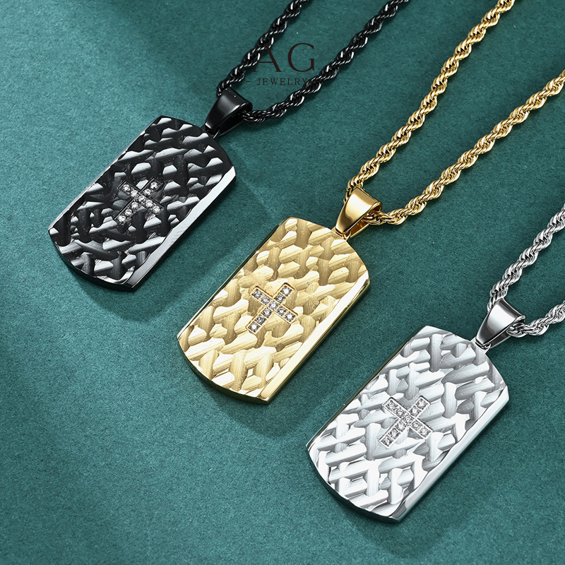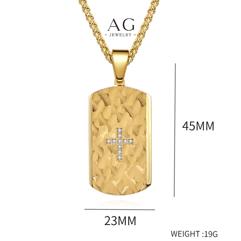 AG Men’s Stainless Steel Square Plaque Cross Zirconia Pendant Necklace Custom Manufacturer Small MOQ AGDZ148