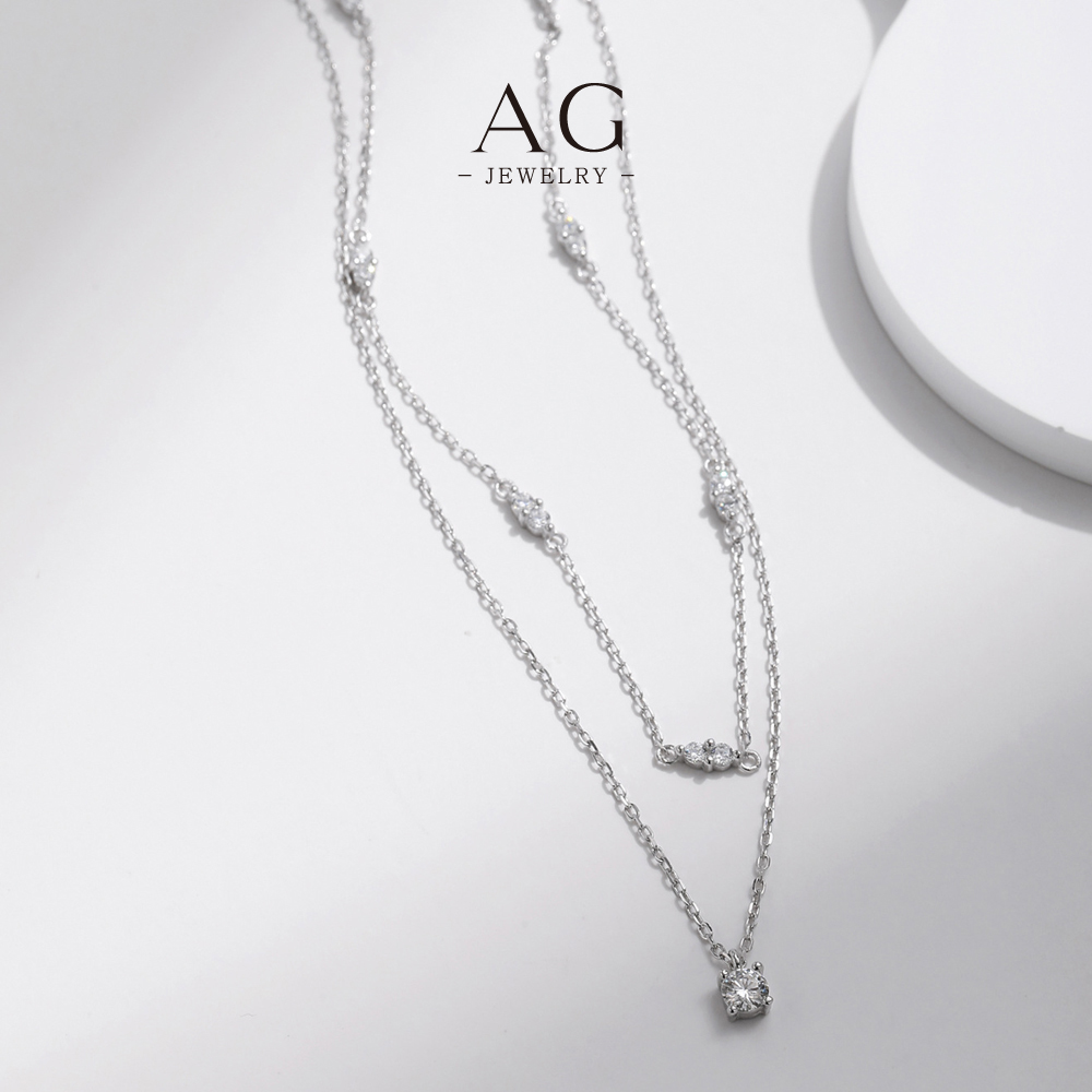 AG Double Layer Zircon Choker Necklace 925 Sterling Silver Stackable Fashion Jewelry AGMSN0030