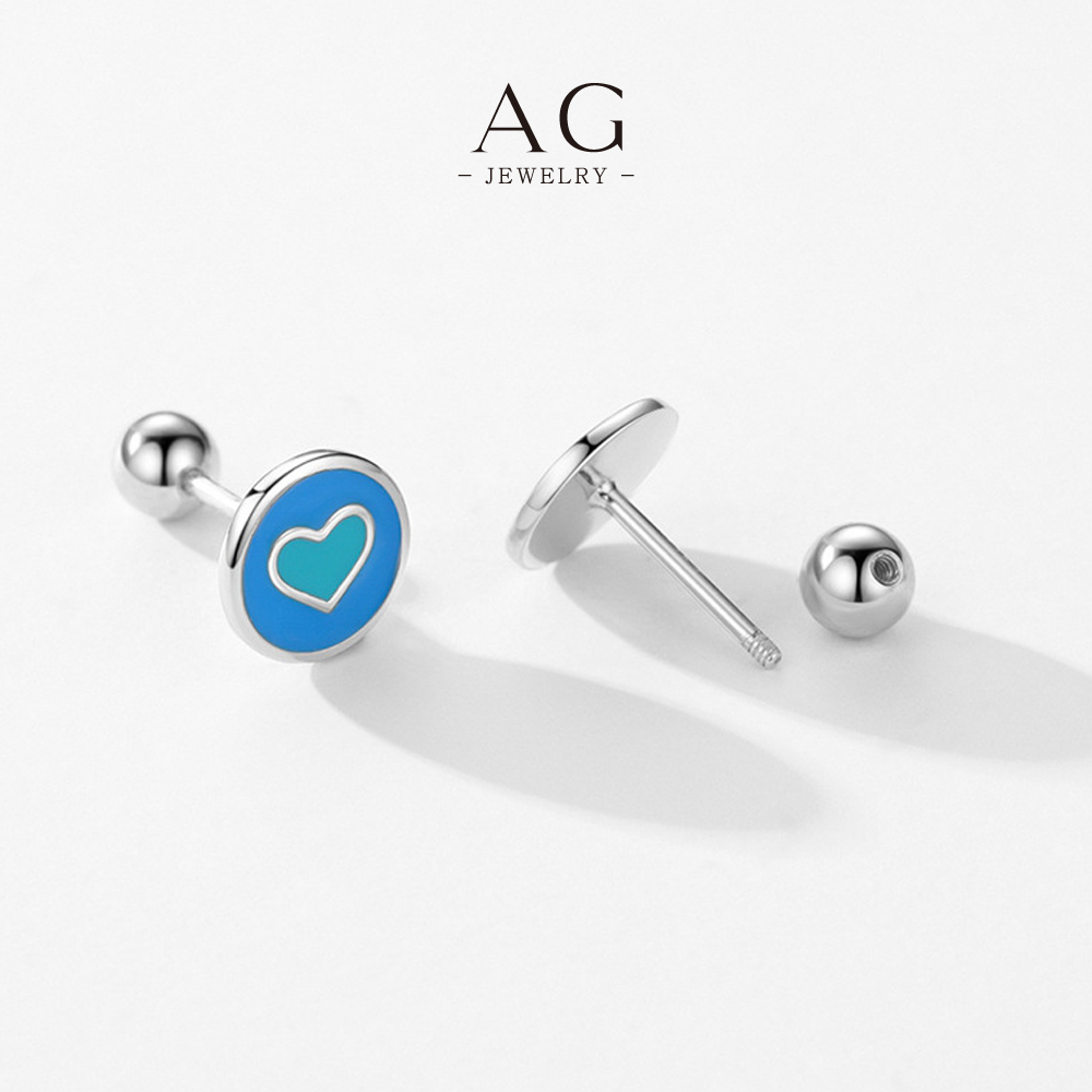 AG Heart Enamel Stud Earrings 925 Silver Plated Glass Art Effect Jewelry AGRHE1300