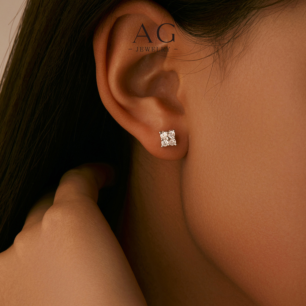 AG Diamond Cut Zircon Stud Earrings 925 Sterling Silver Angular Light Reflection Jewelry AGMSE0024
