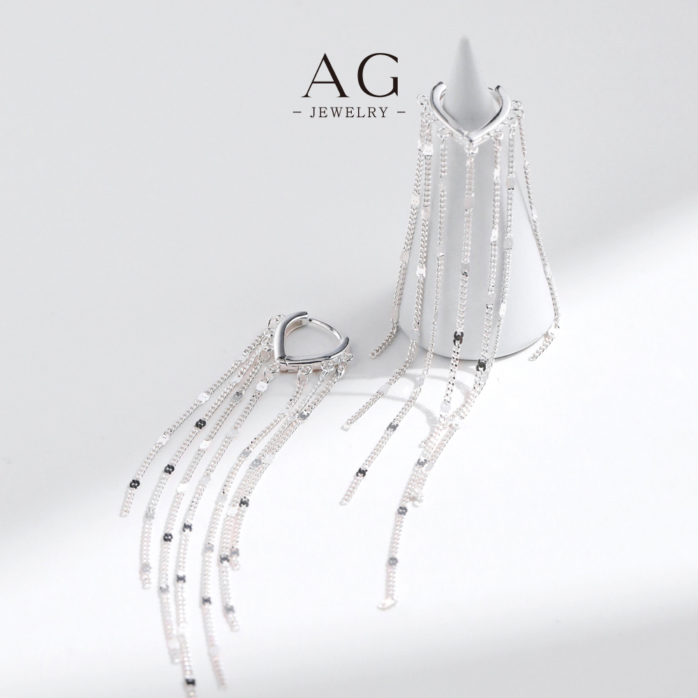 AG Cascading Tassel Earrings 925 Sterling Silver Bohemian Movement Jewelry AGG7026
