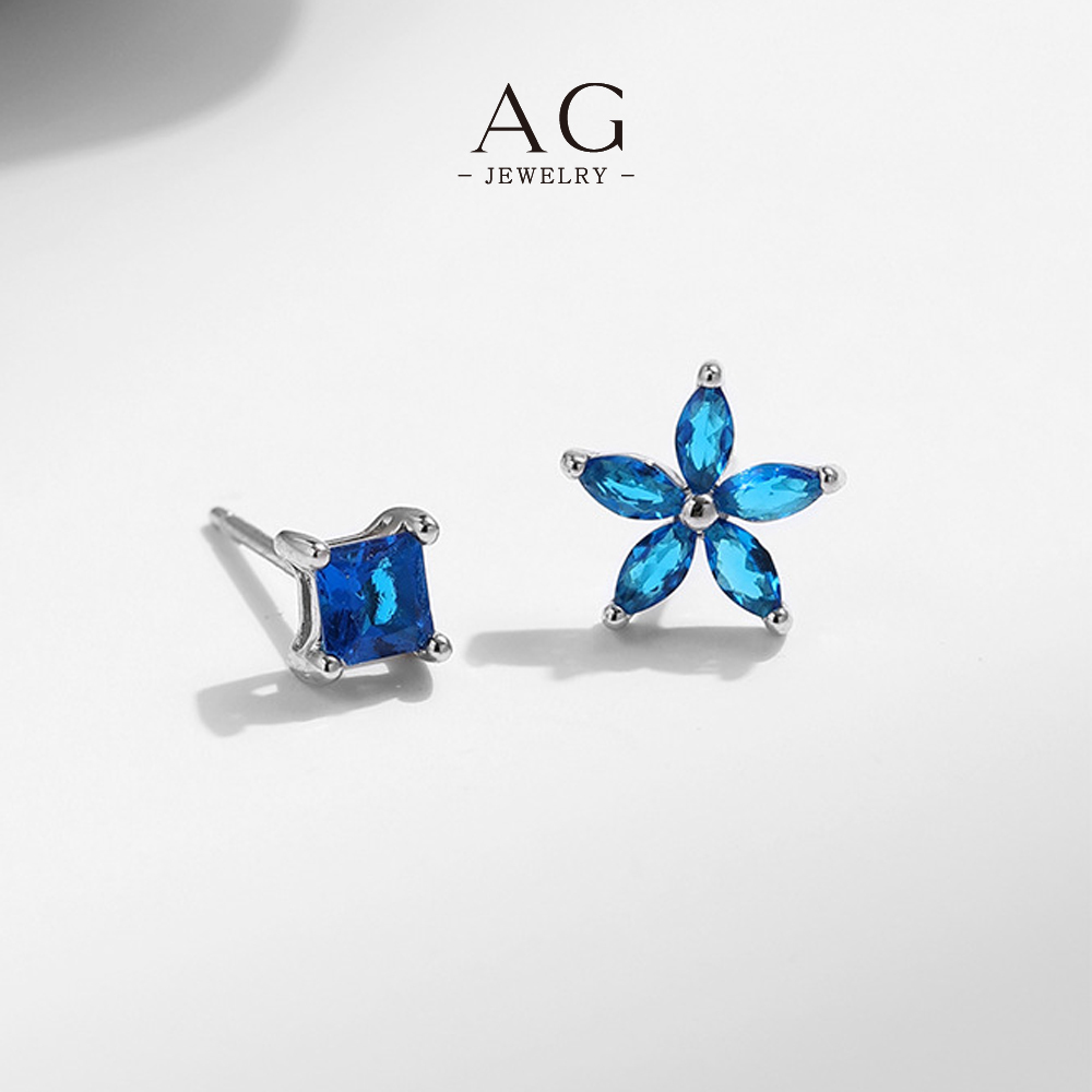AG Mismatched Navy Earrings 925 Sterling Silver Geometric and Floral Duo AGE8018