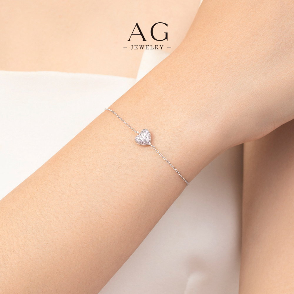 AG Pavé Heart Zircon Bracelet 925 Sterling Silver Anniversary Gift for Her AGRHB1364