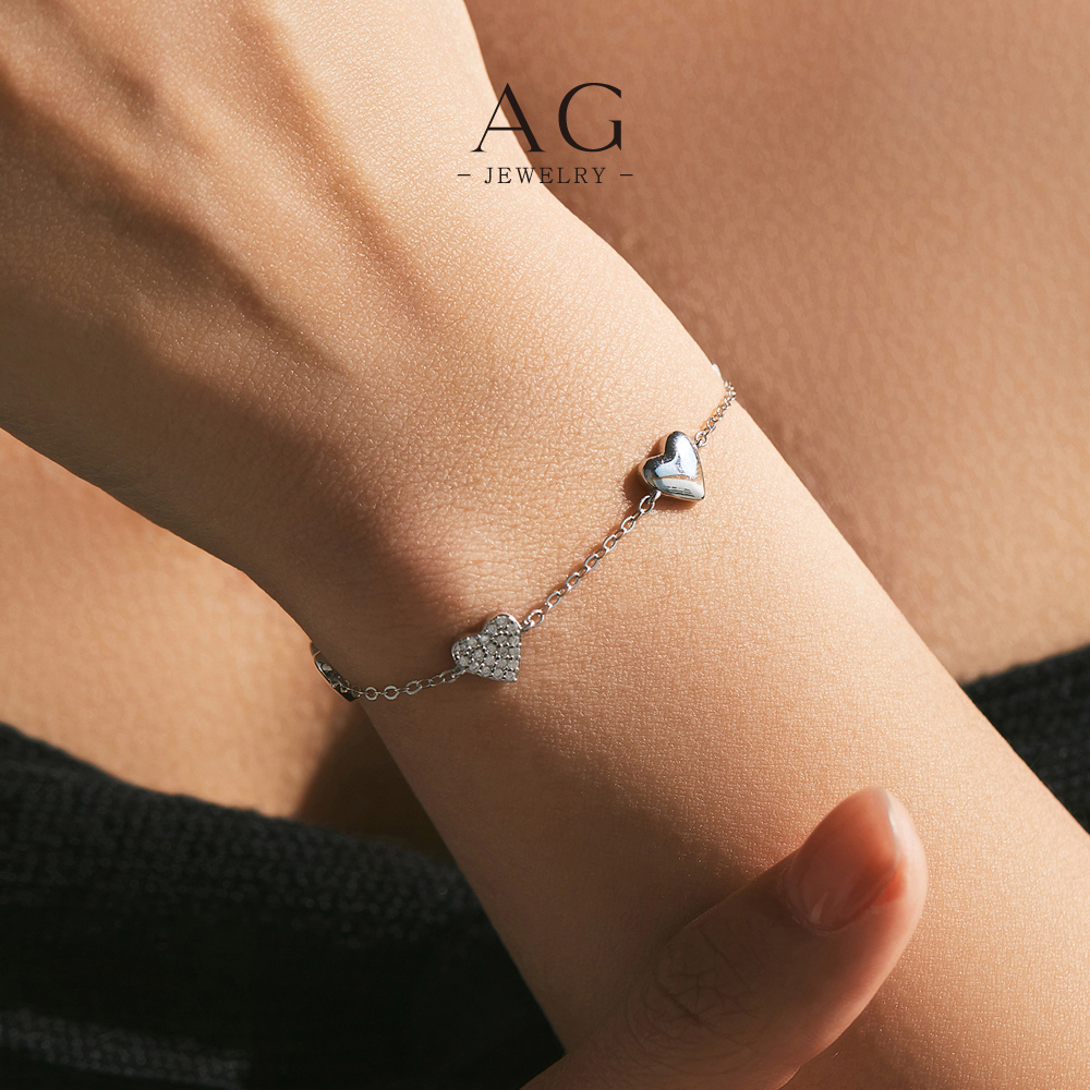 AG Heart Link Bracelet 925 Sterling Silver Romantic Token Jewelry AGRHB1872