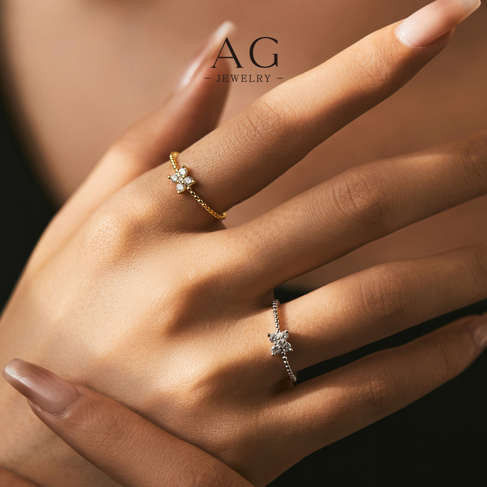 AG Floral Cluster Beaded Ring 925 Sterling Silver Garden Romance Jewelry AGMSR0051-2
