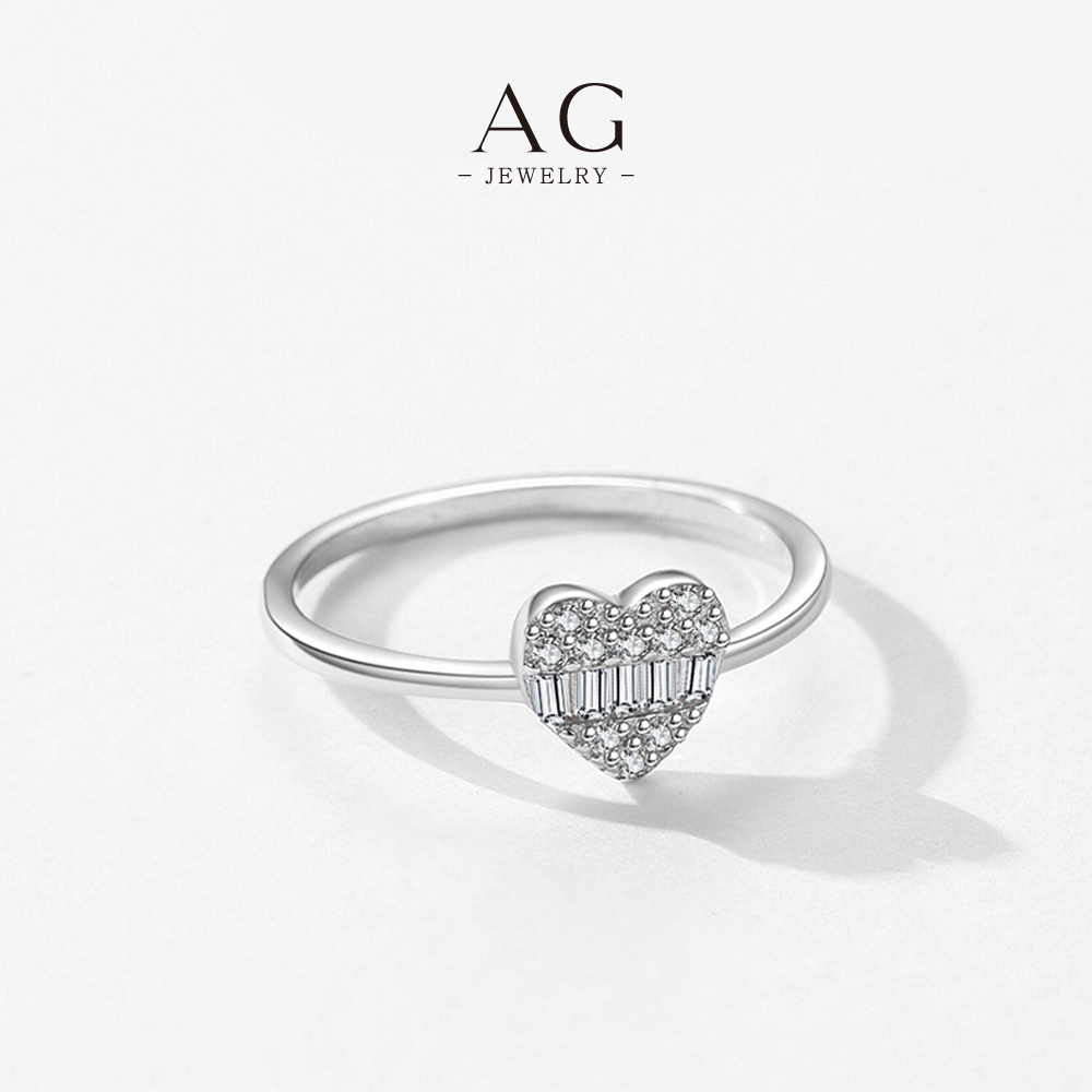 AG JEWELRY Heart Shaped Zircon Ring 925 Sterling Silver Modern Love Token AGRHR1455