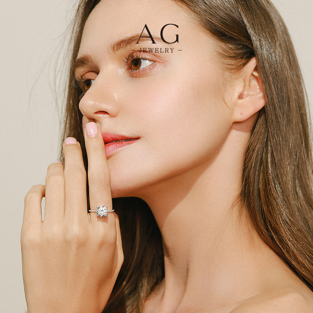 AG JEWELRY Solitaire Zircon Engagement Ring 925 Sterling Silver Bridal Jewelry AGRHR355