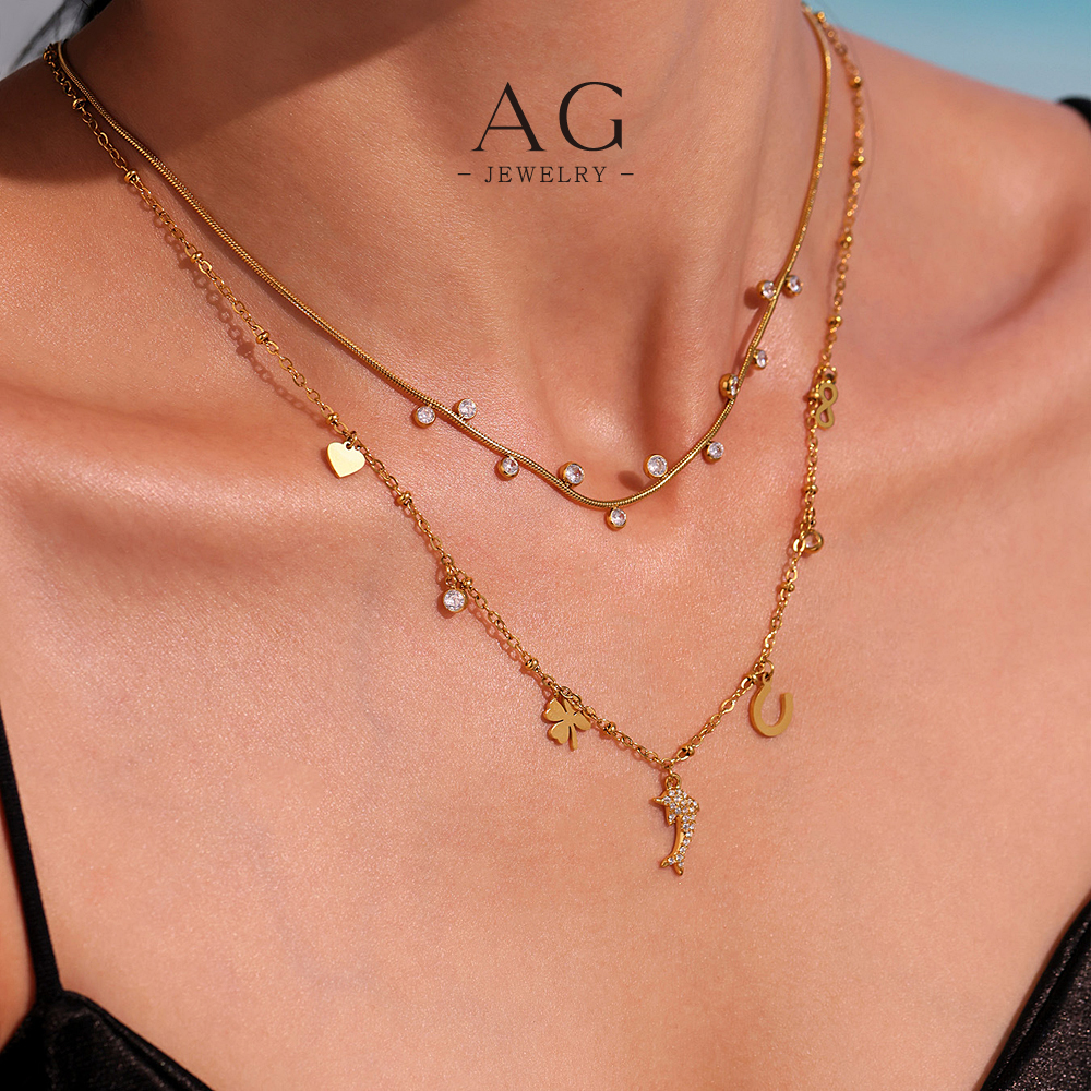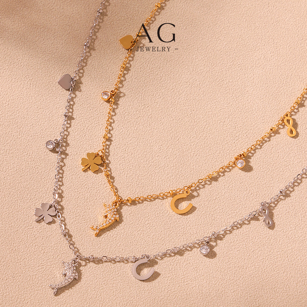 AG Multi Pendant Necklace Stainless Steel Layered Narrative Jewelry AGP1335