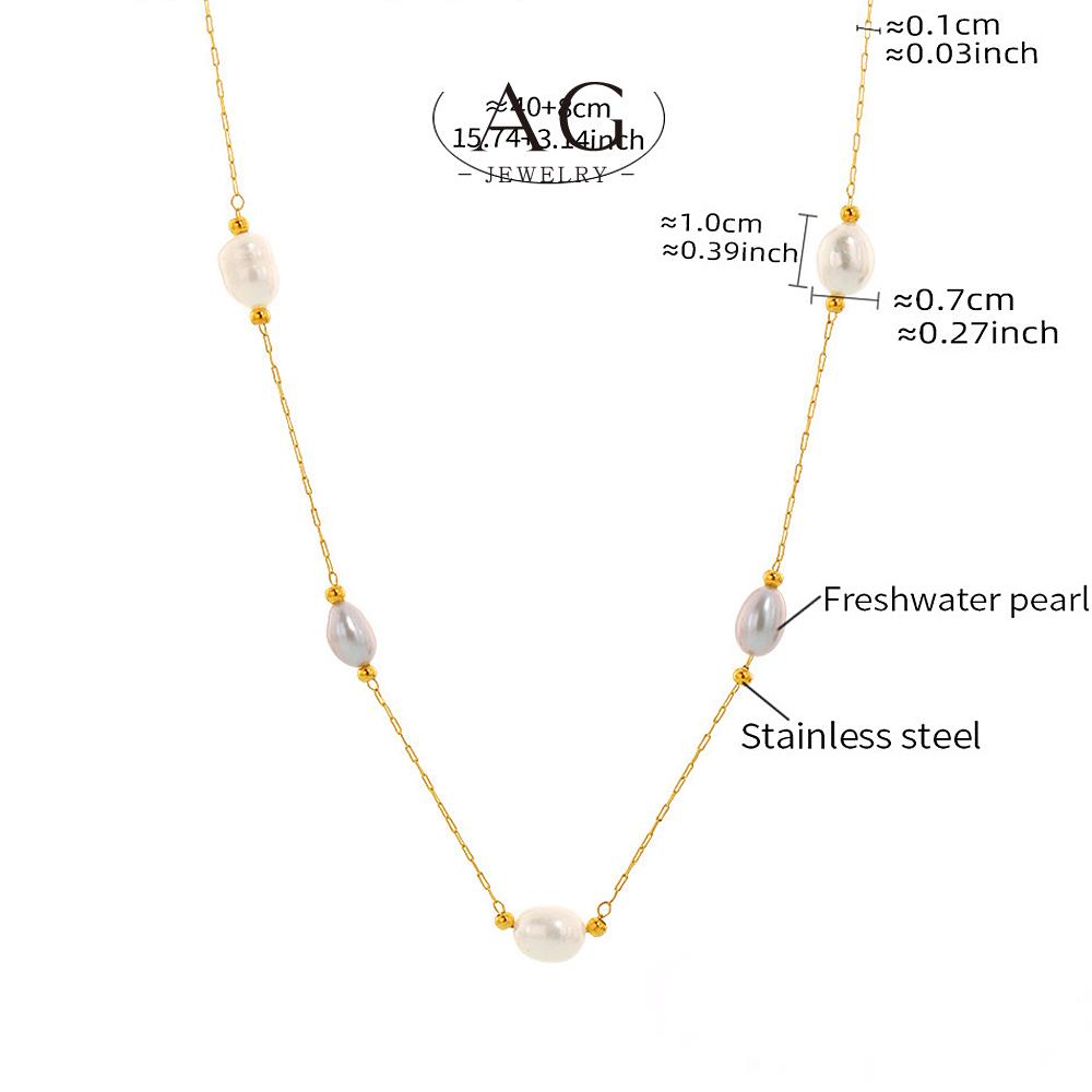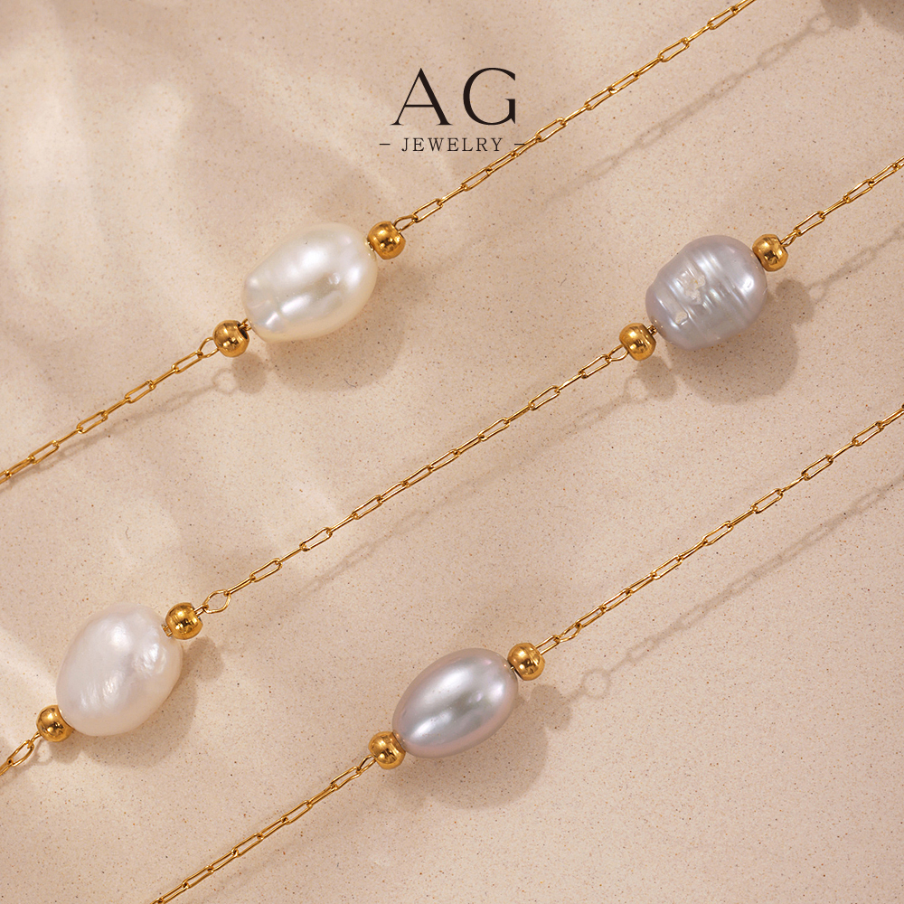 AG Pearl Strand Necklace Stainless Steel Layered Luster Jewelry AGP1303