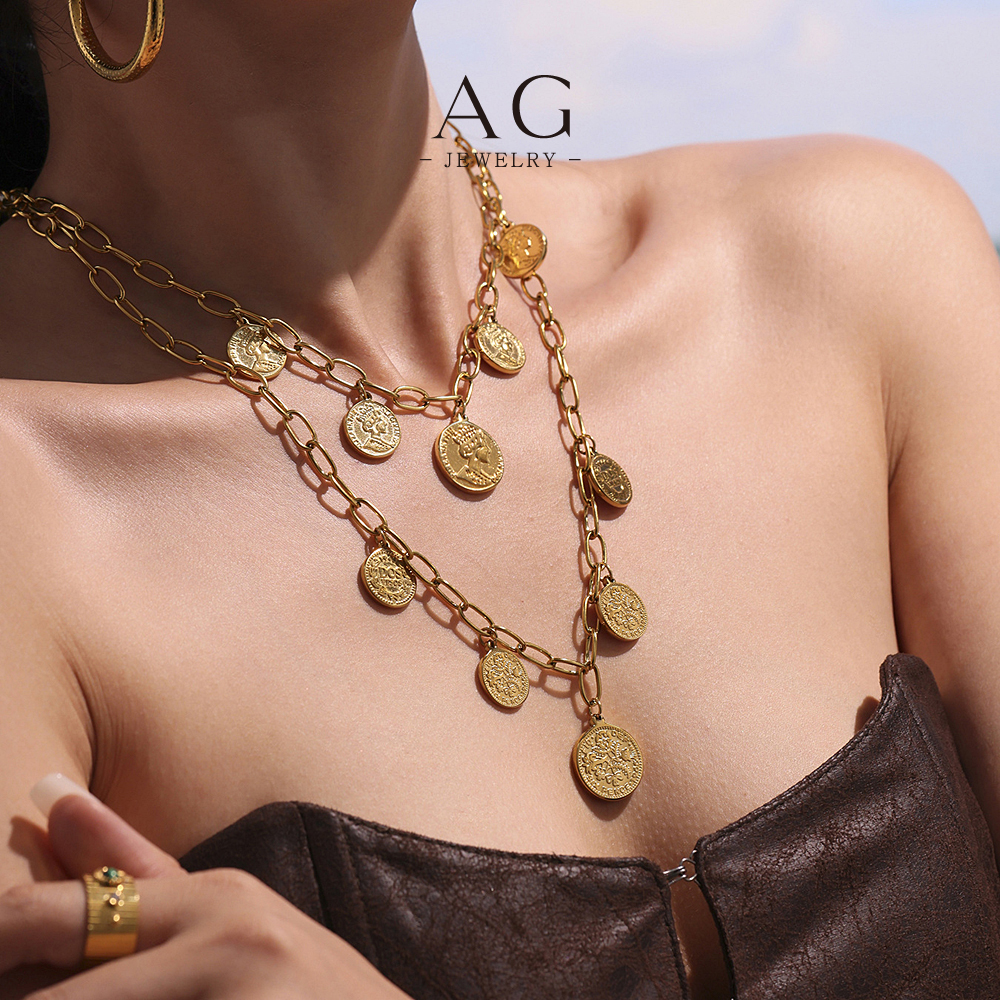 AG Stainless Steel Coin Pendant Necklace Vintage Custom Jewelry AGP840
