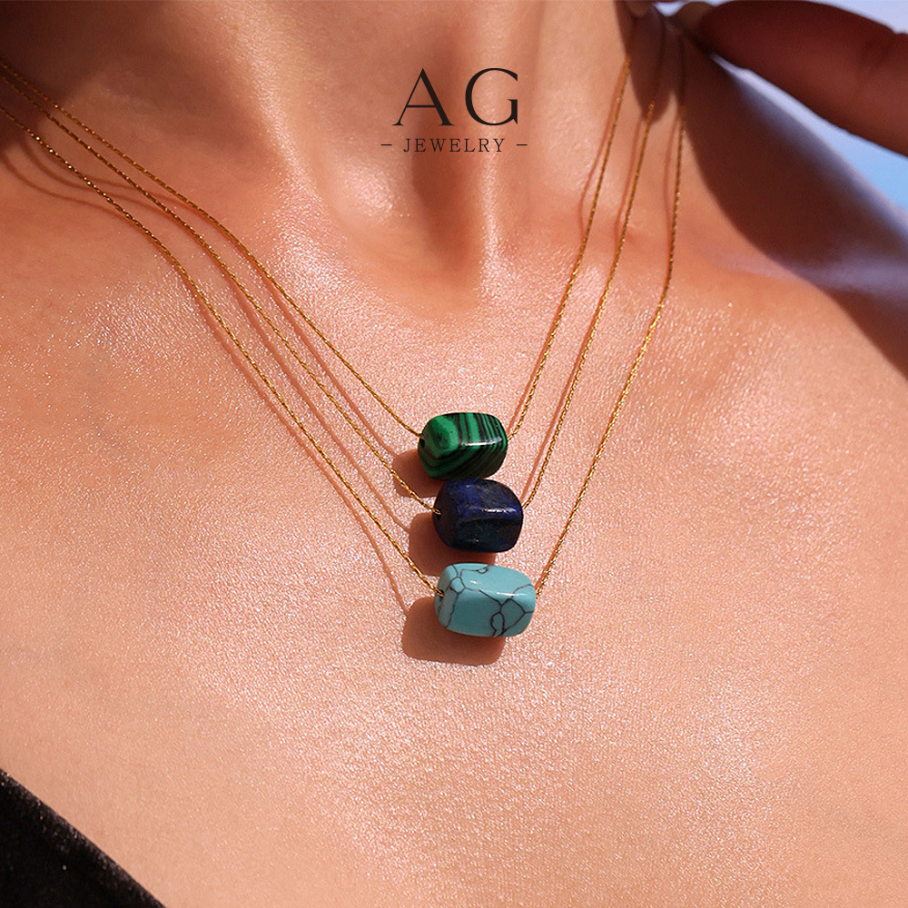 AG Malachite Stone Stainless Steel Statement Necklace For Women AGP594