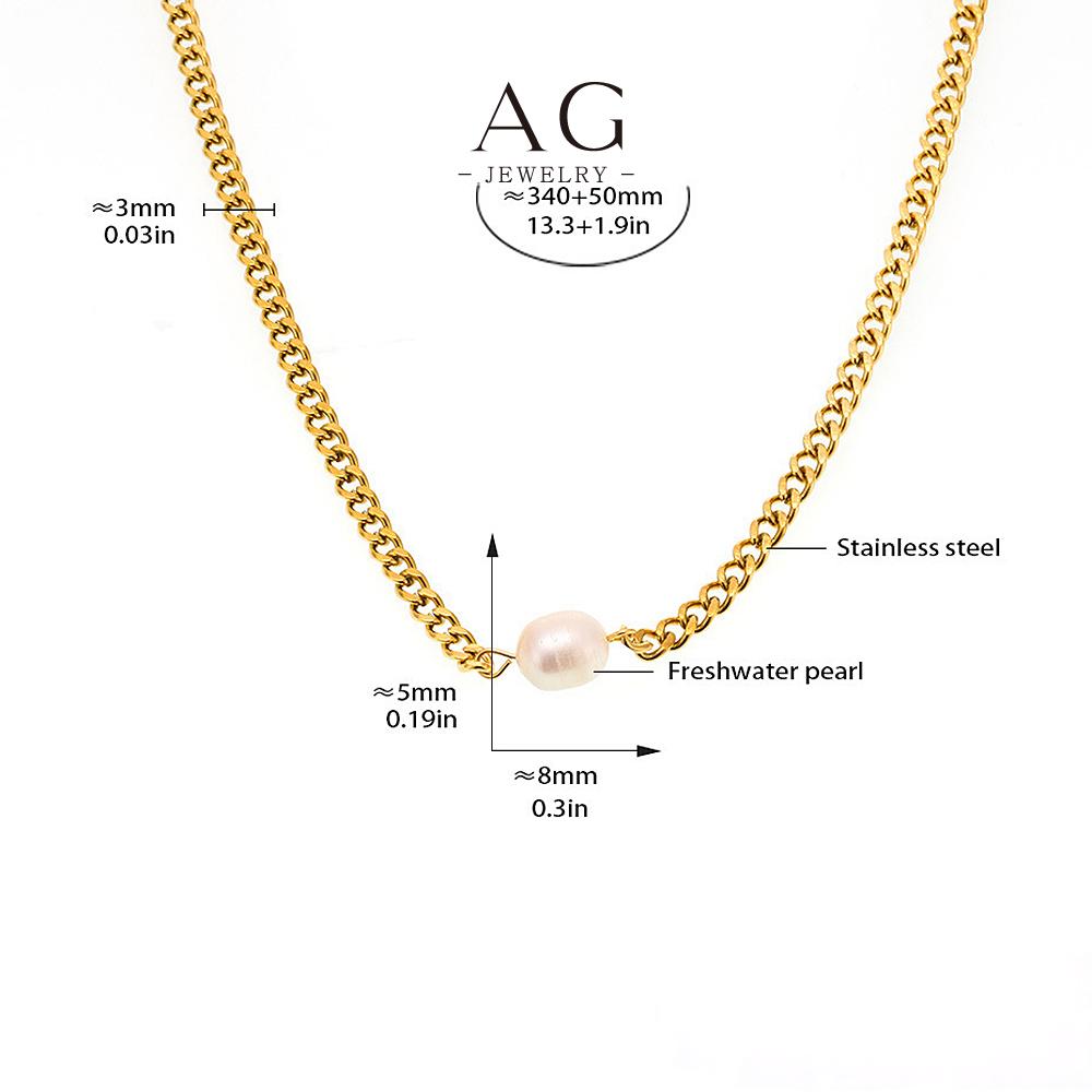 AG Stainless Steel Pearl Chain Necklace Minimalist Dainty Jewelry AGP539