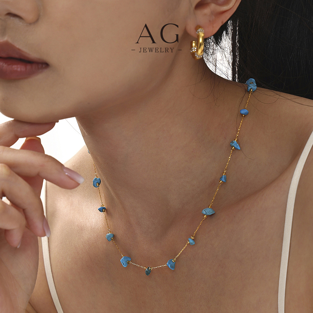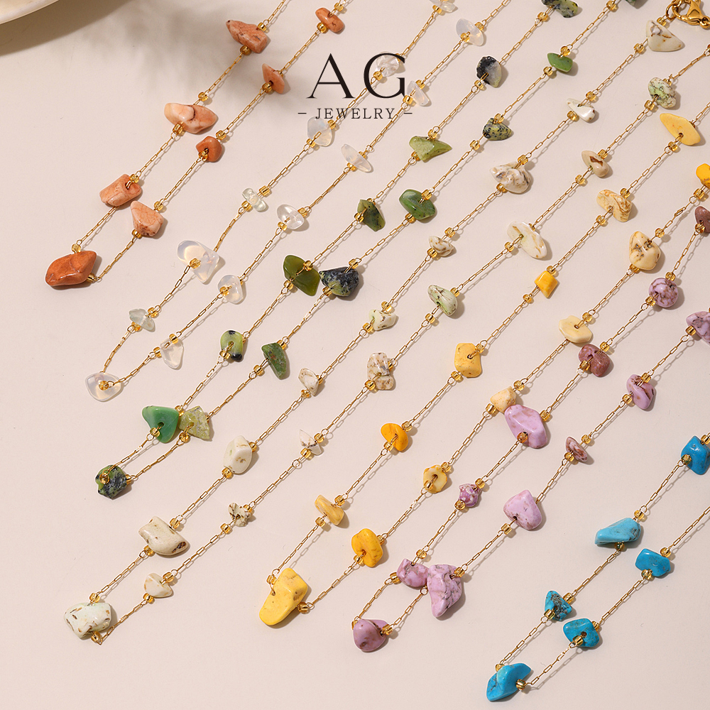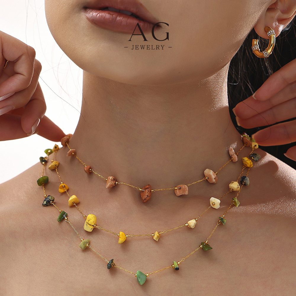 AG Natural Gemstone Stainless Steel Necklace BSCI Certified Jewelry Supplier AGP2154