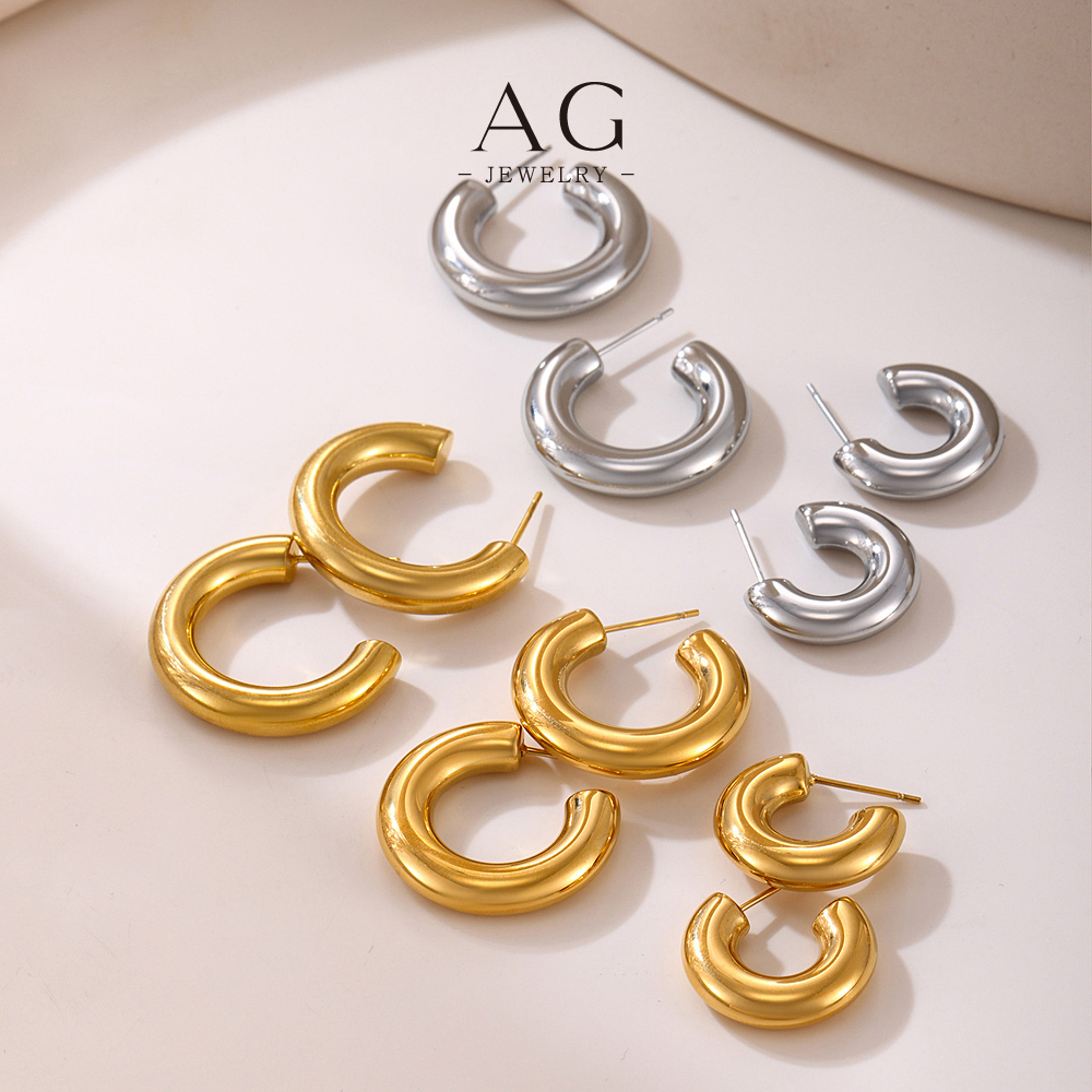 AG Stainless Steel Hollow C Shape Hoop Earrings Lightweight Minimalist AGF1715