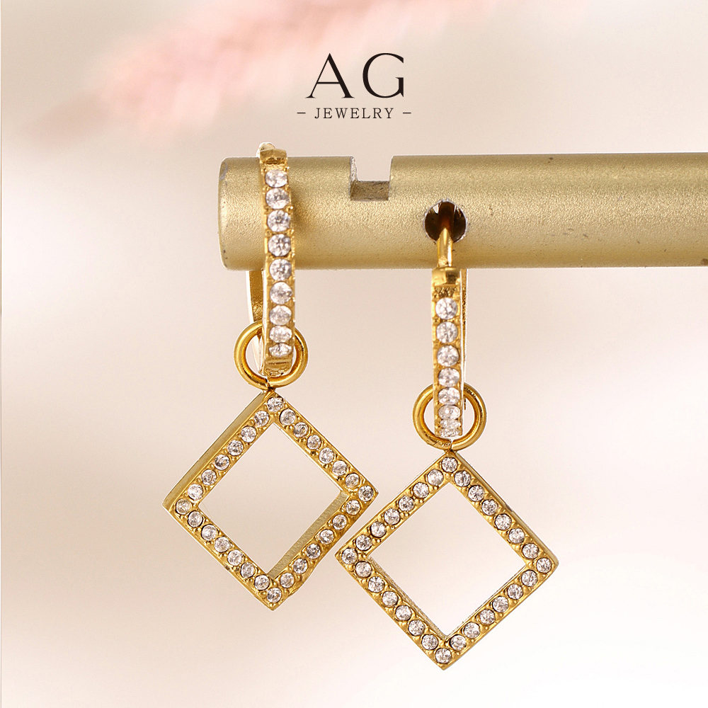 AG Stainless Steel Princess Cut Zirconia Earrings Geometric Brilliance AGF1681