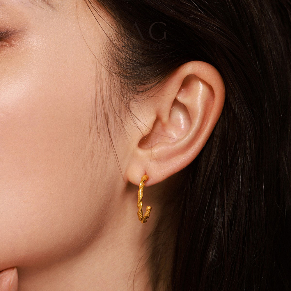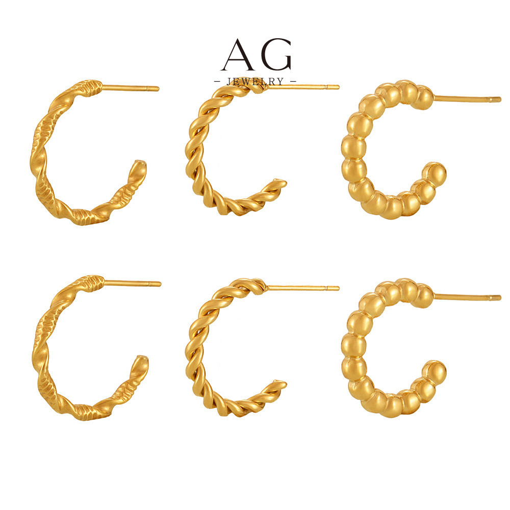 AG Textured C Shape Hoop Earrings Modern Geometric Collection AG JEWELRY AGF1418