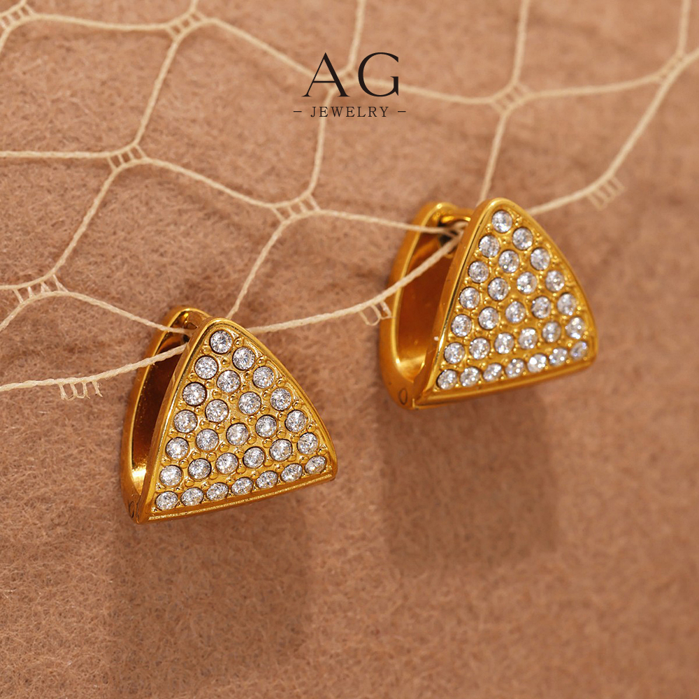 AG Stainless Steel Triangle Zirconia Earrings Geometric Statement Jewelry AGF1186