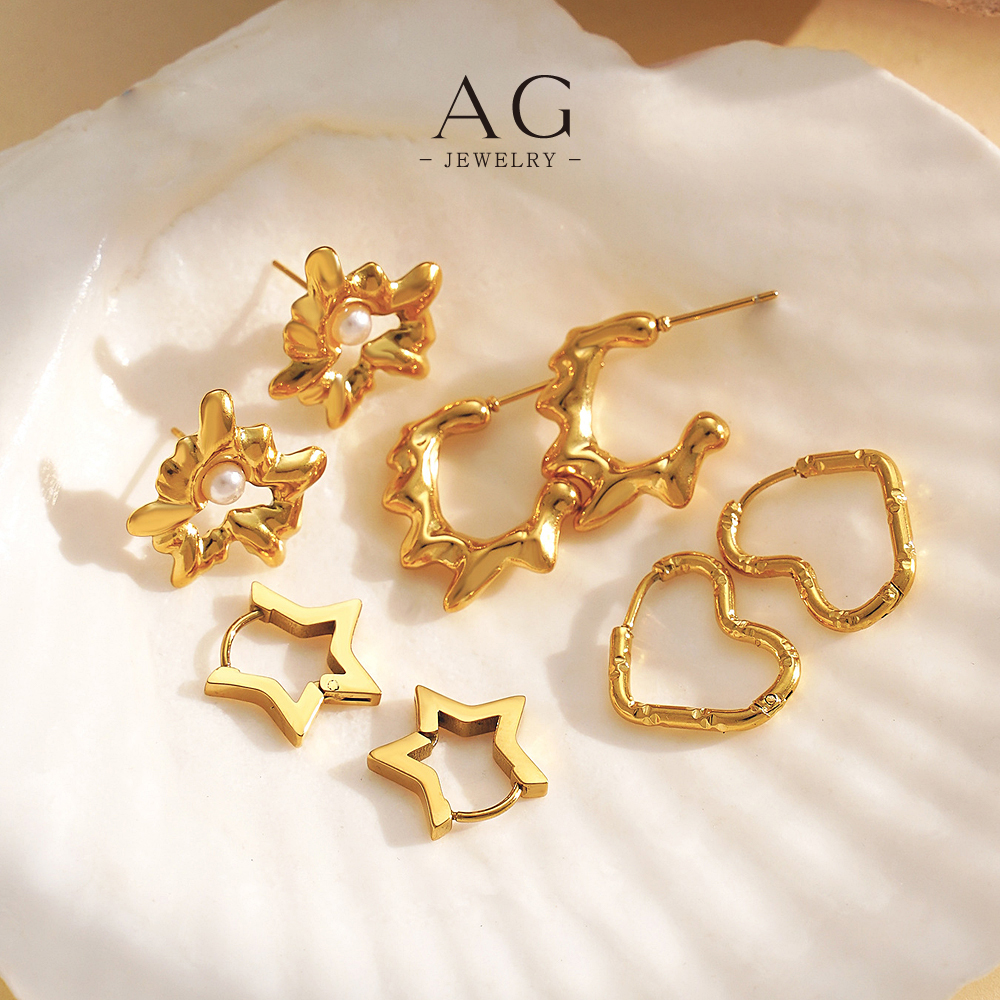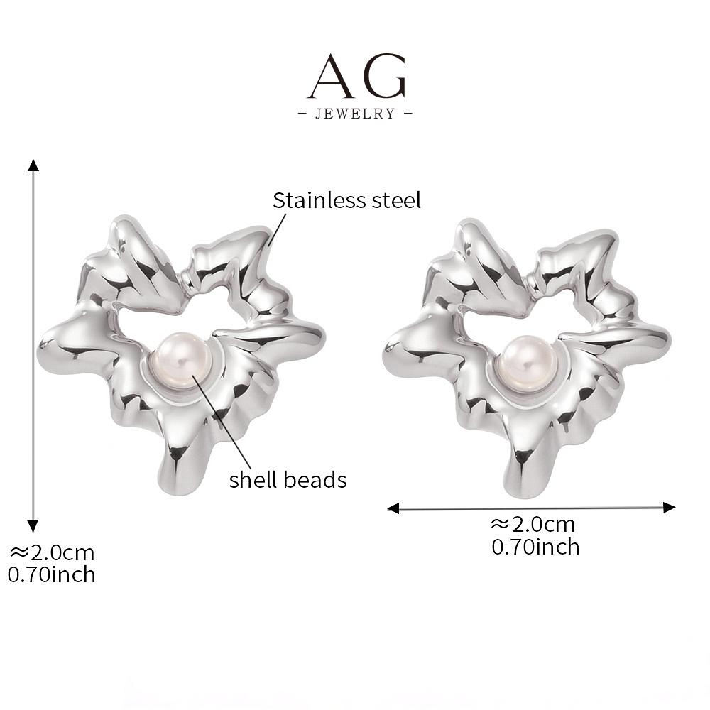 AG Stainless Steel Pearl Centered Heart Silhouette Earrings Modern Love Theme AGF1067
