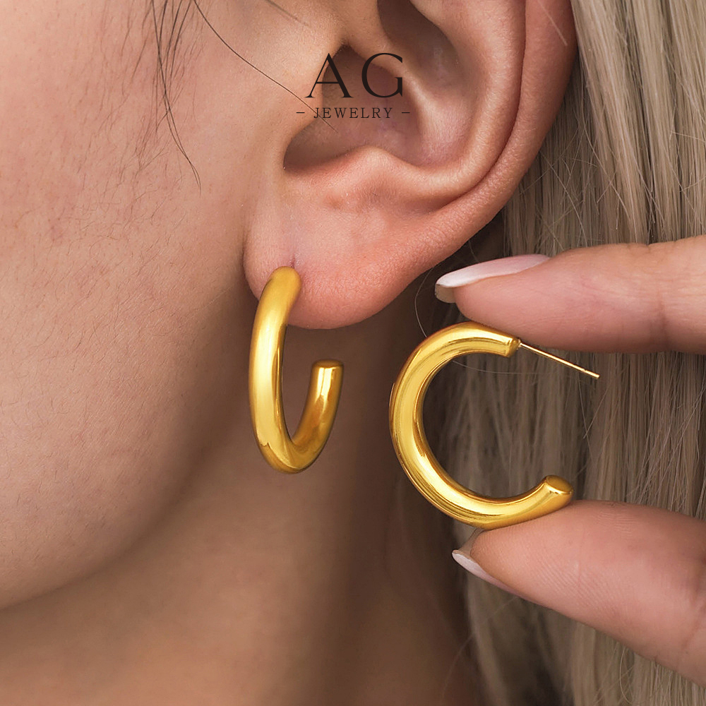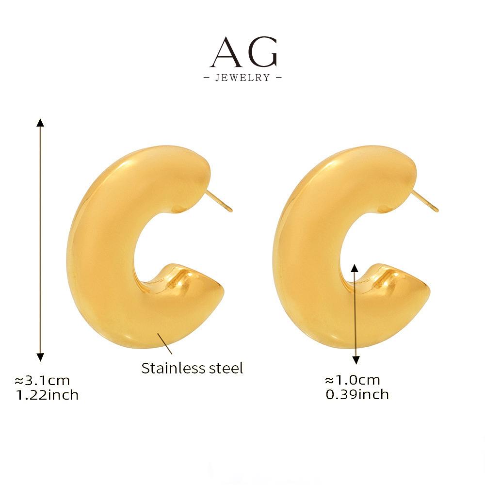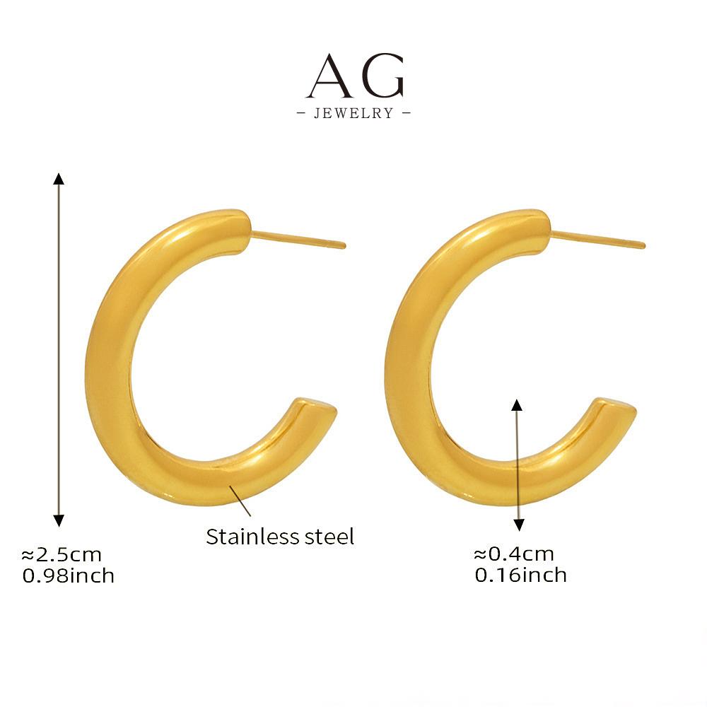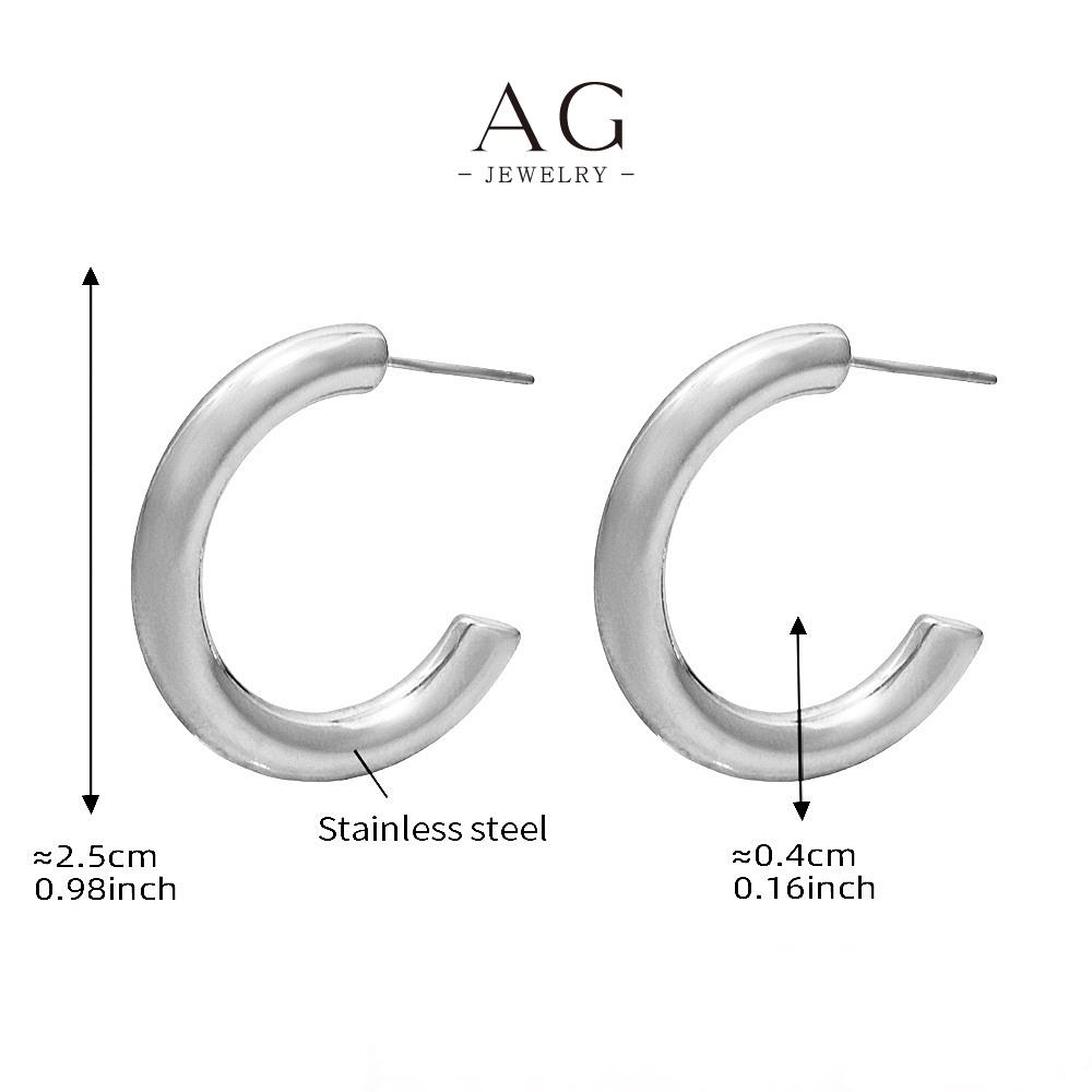 AG Stainless Steel C Shape Hoop Earrings Minimalist Geometric Jewelry AGF1016