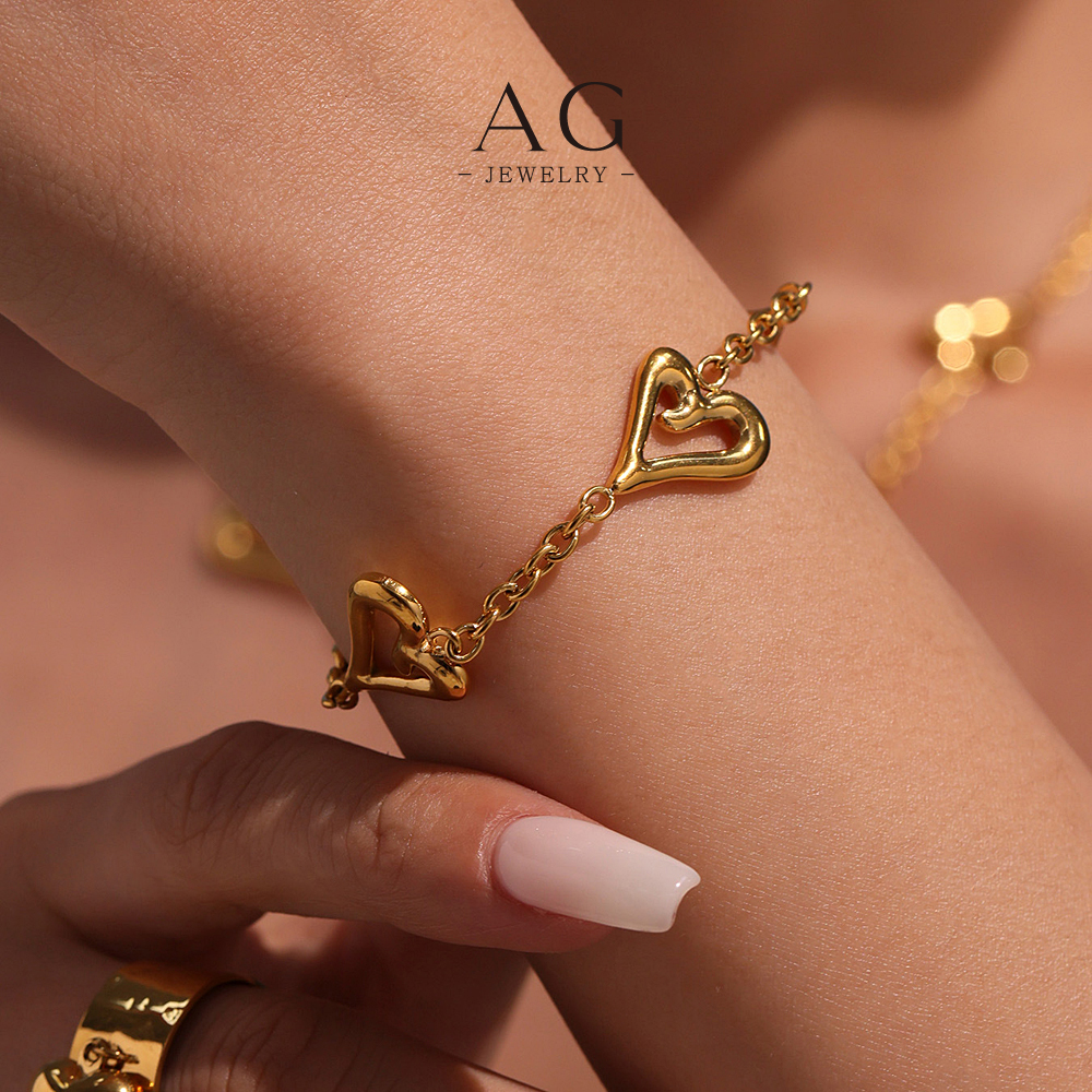 AG Multi Charm Heart Shape Jewelry Set Necklace Bracelet Earrings Romantic Gift Collection AGTXE267