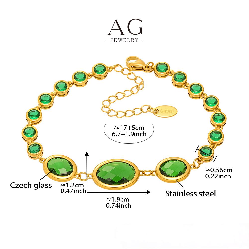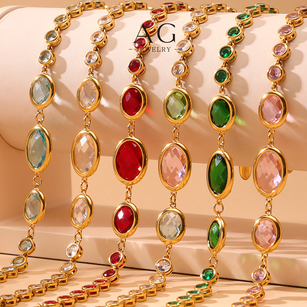 AG Stainless Steel Multi Color Oval Zirconia Bracelet Full Crystal Collection AGE655