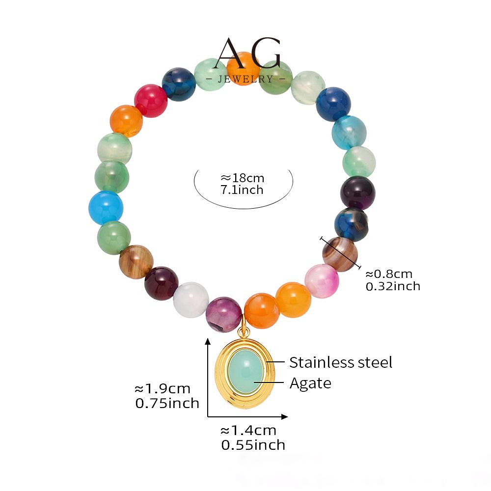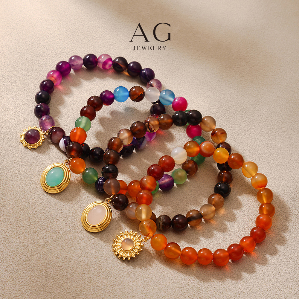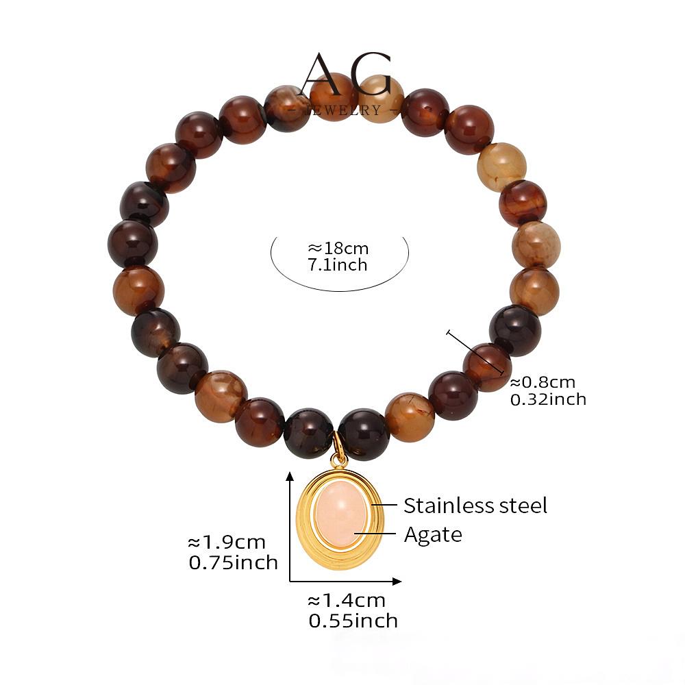 AG Stainless Steel Natural Stone Pendant Bracelet Quartz Tiger Eye Strawberry Quartz Collection AGE654