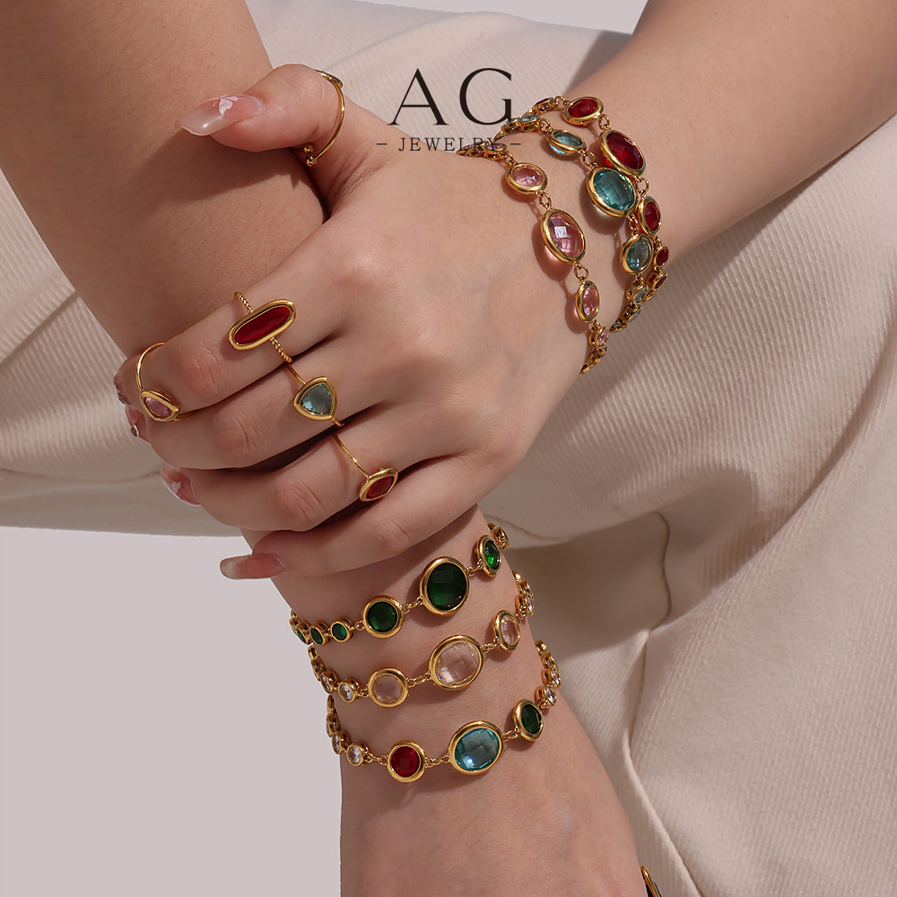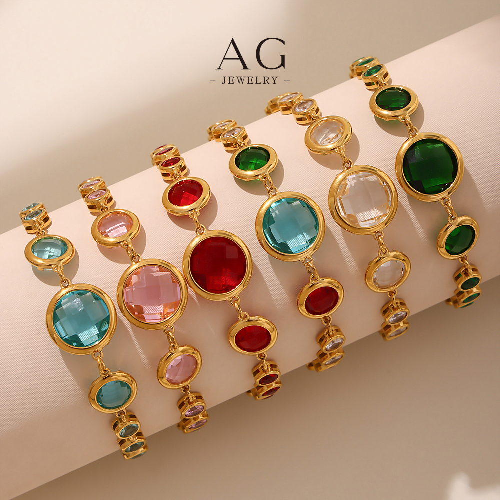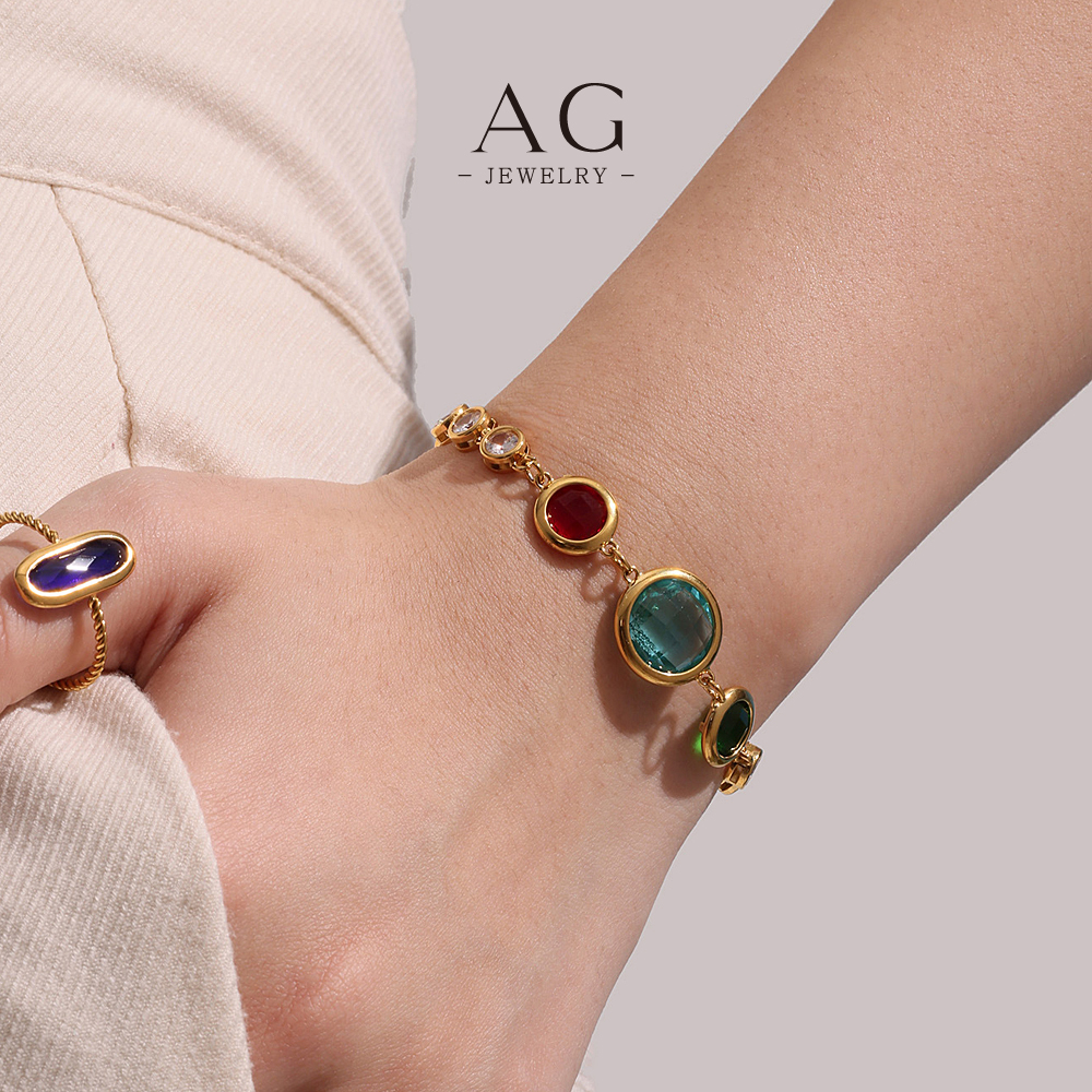 AG Stainless Steel Multi Color Full Zirconia Bracelet Rainbow Crystal Collection AGE653