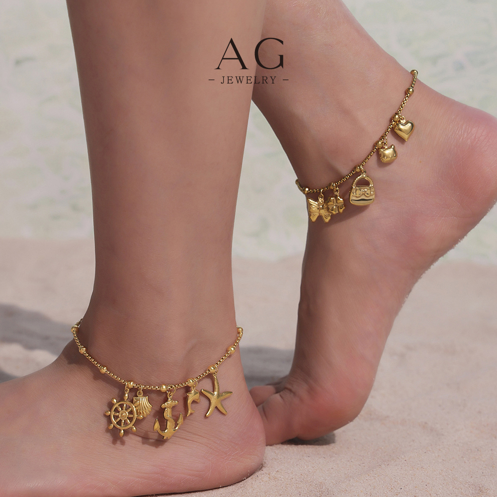 AG Stainless Steel Heart Bear Double Charm Bracelet Cute Romantic Gift AGE638