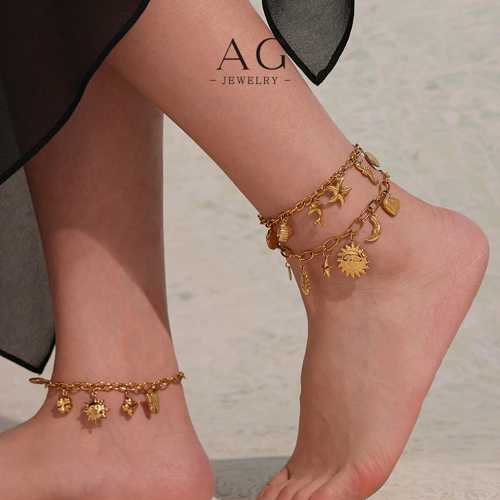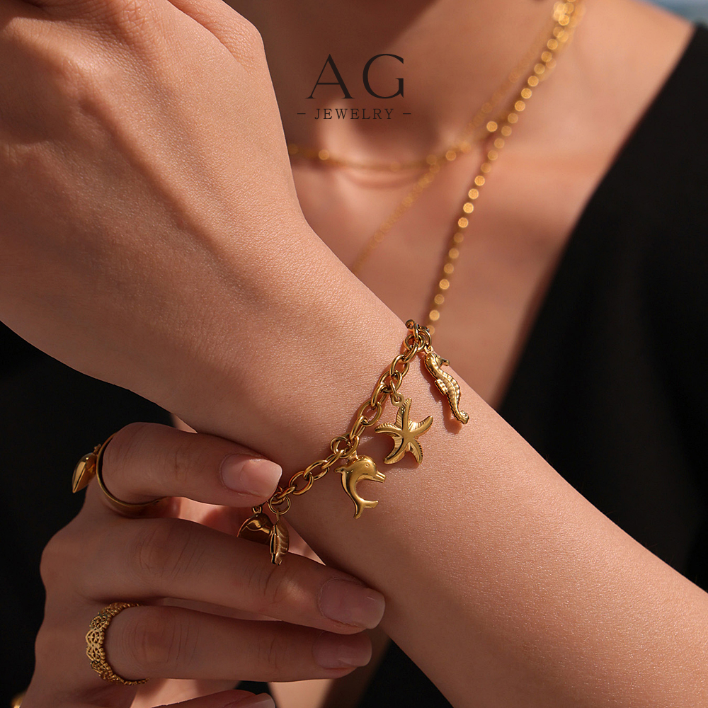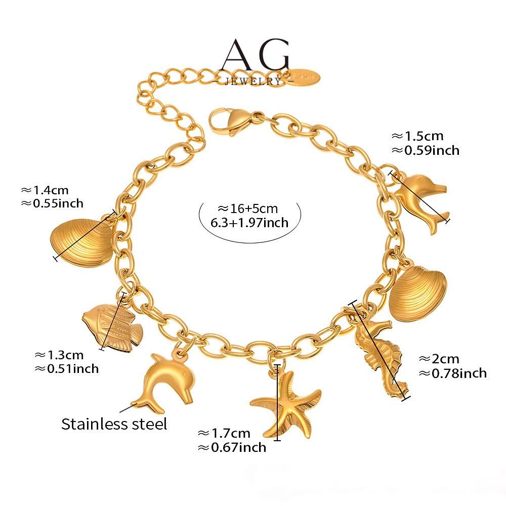 AG Stainless Steel Ocean Theme Charm Bracelet Nautical Beach Jewelry AGE636