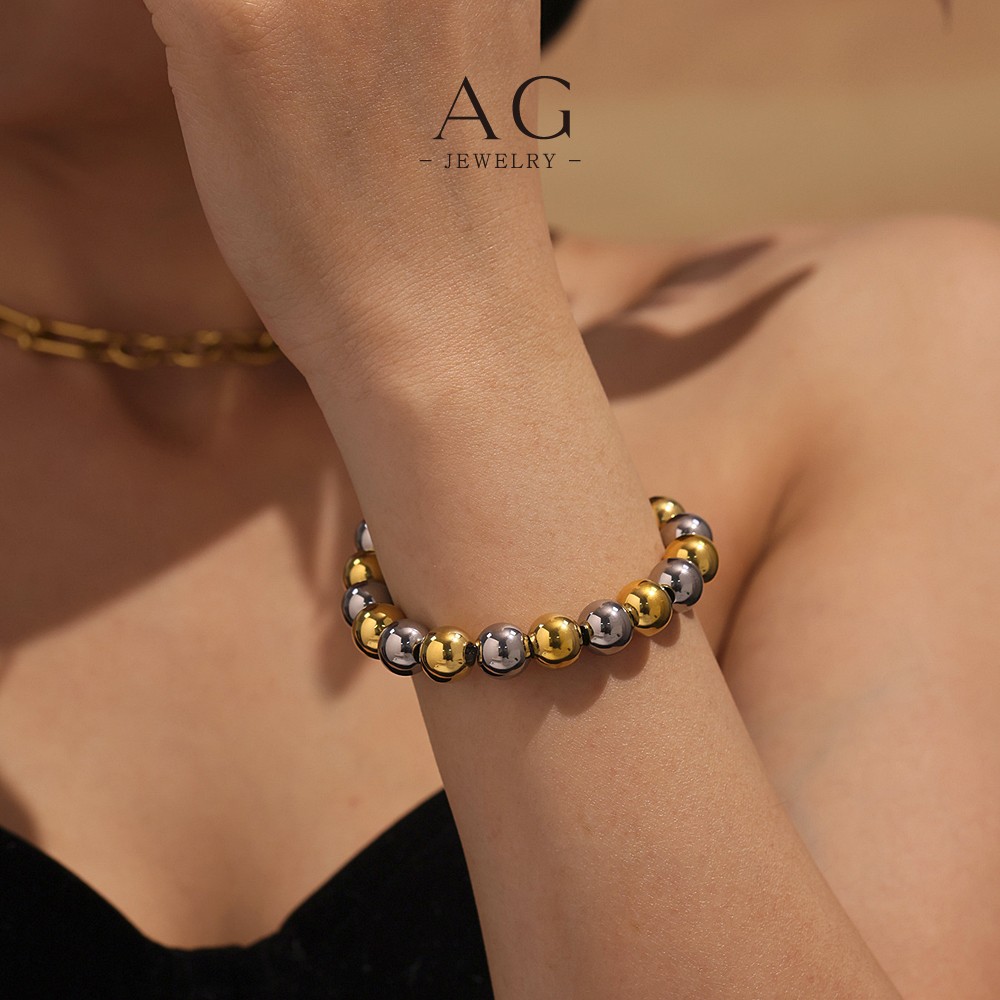 AG Stainless Steel Full Bead Bracelet Two Tone Plated Jewelry AGE601