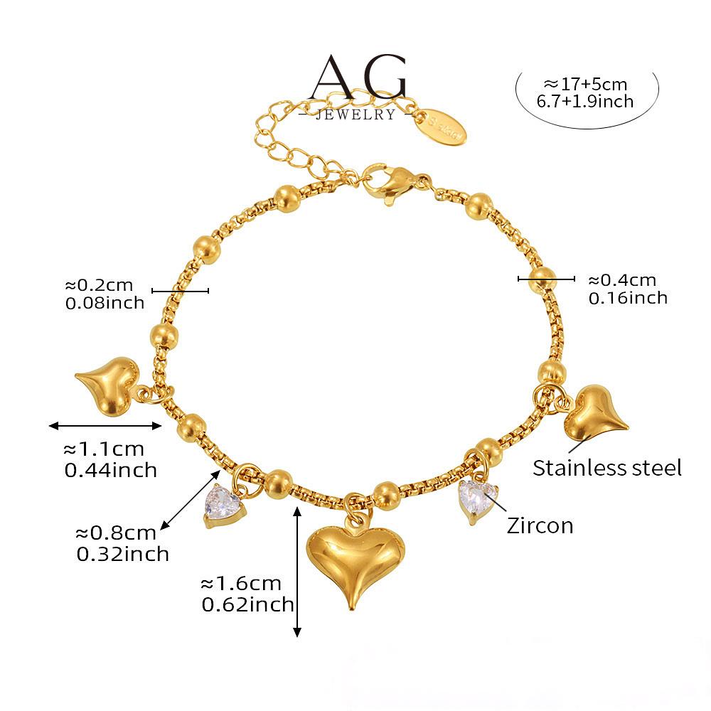AG Stainless Steel Multi Pendant Heart Charm Bracelet Layered Gift Set AGE596