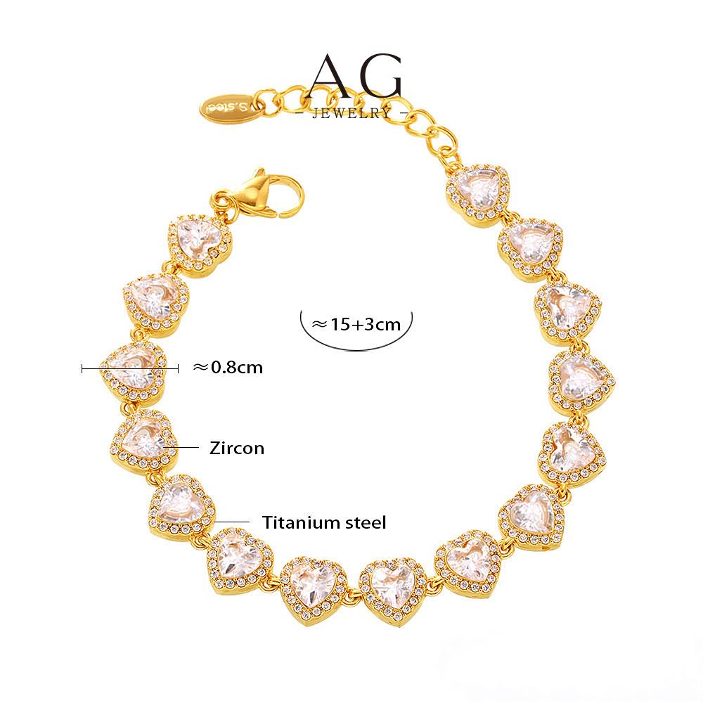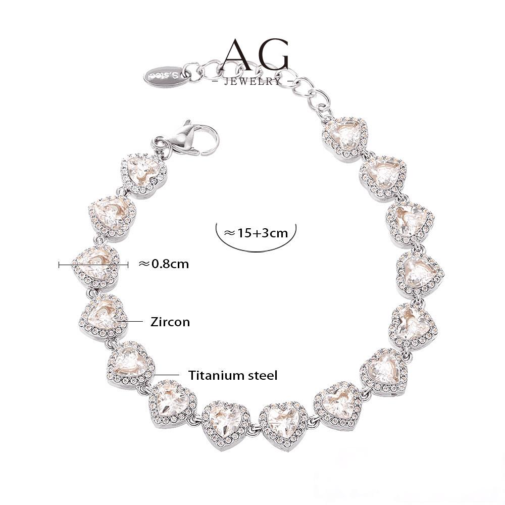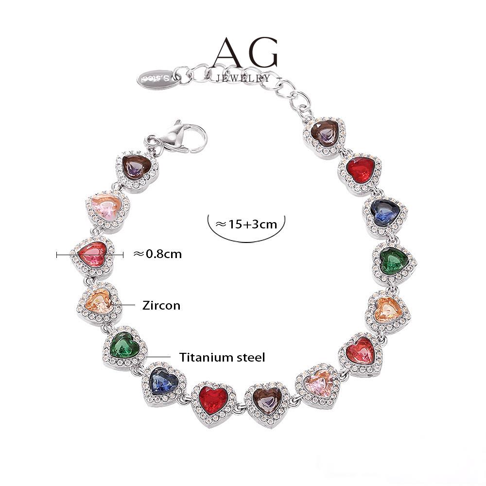 AG Stainless Steel Full Cut Multi Color Zirconia Heart Bracelet AGE556