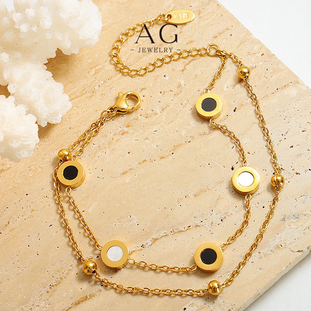 AG Stainless Steel Black White Mother Of Pearl Bead Bracelet BSCI Certified AGE144