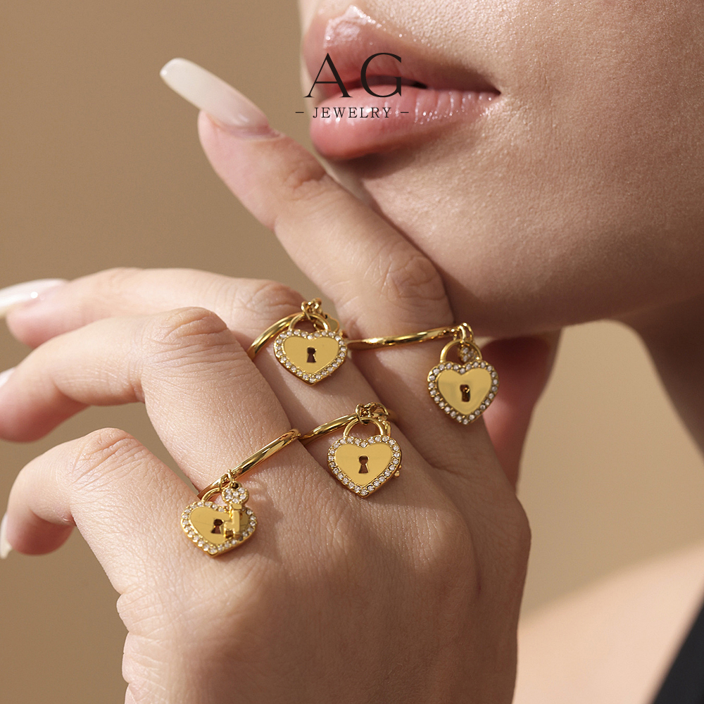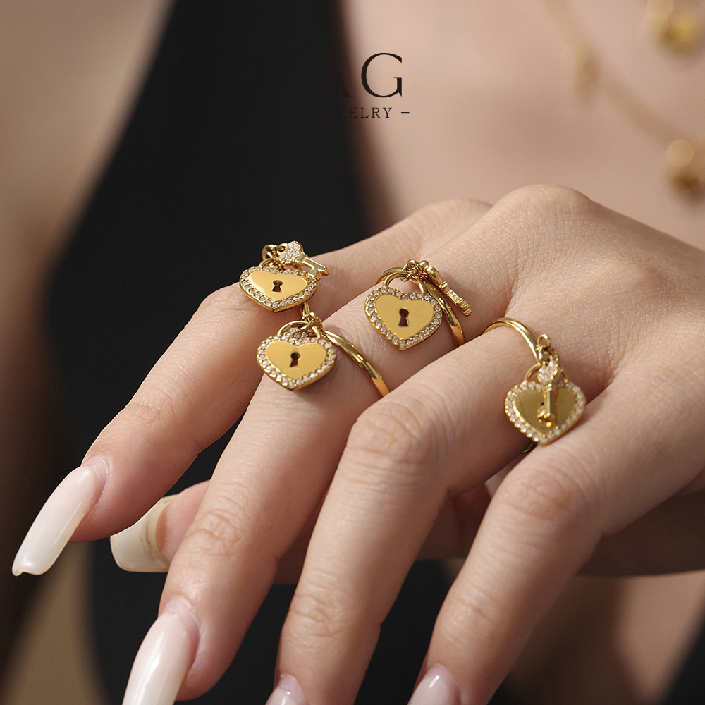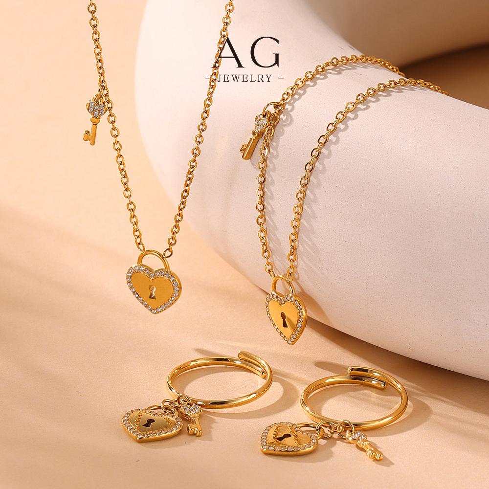 AG Heart And Lock Jewelry Set Necklace Bracelet Earrings Rings Romantic Security Collection AGTXA299