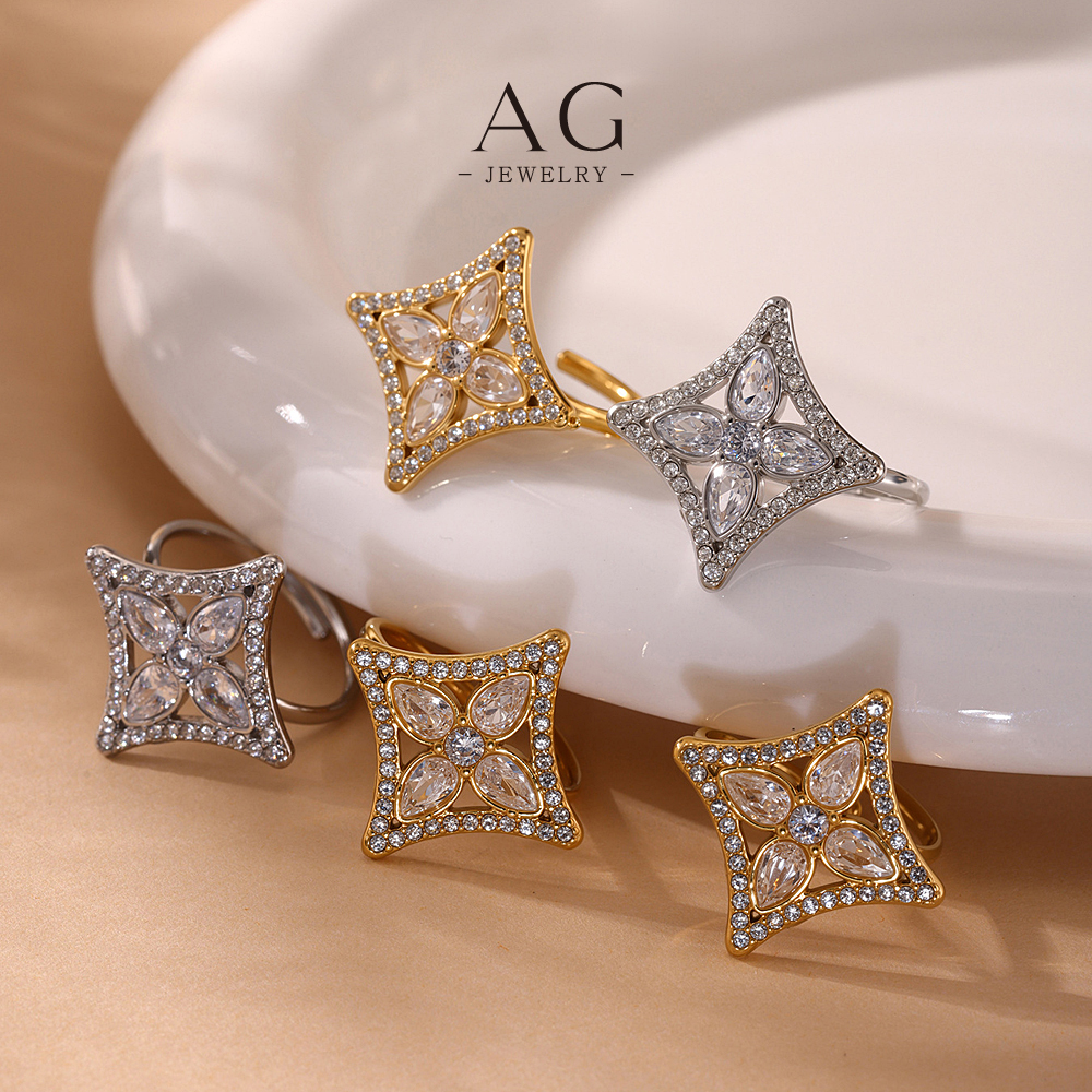 AG Diamond Shape Jewelry Set Necklace Bracelet Earrings Ring Geometric Collection AGTXA294