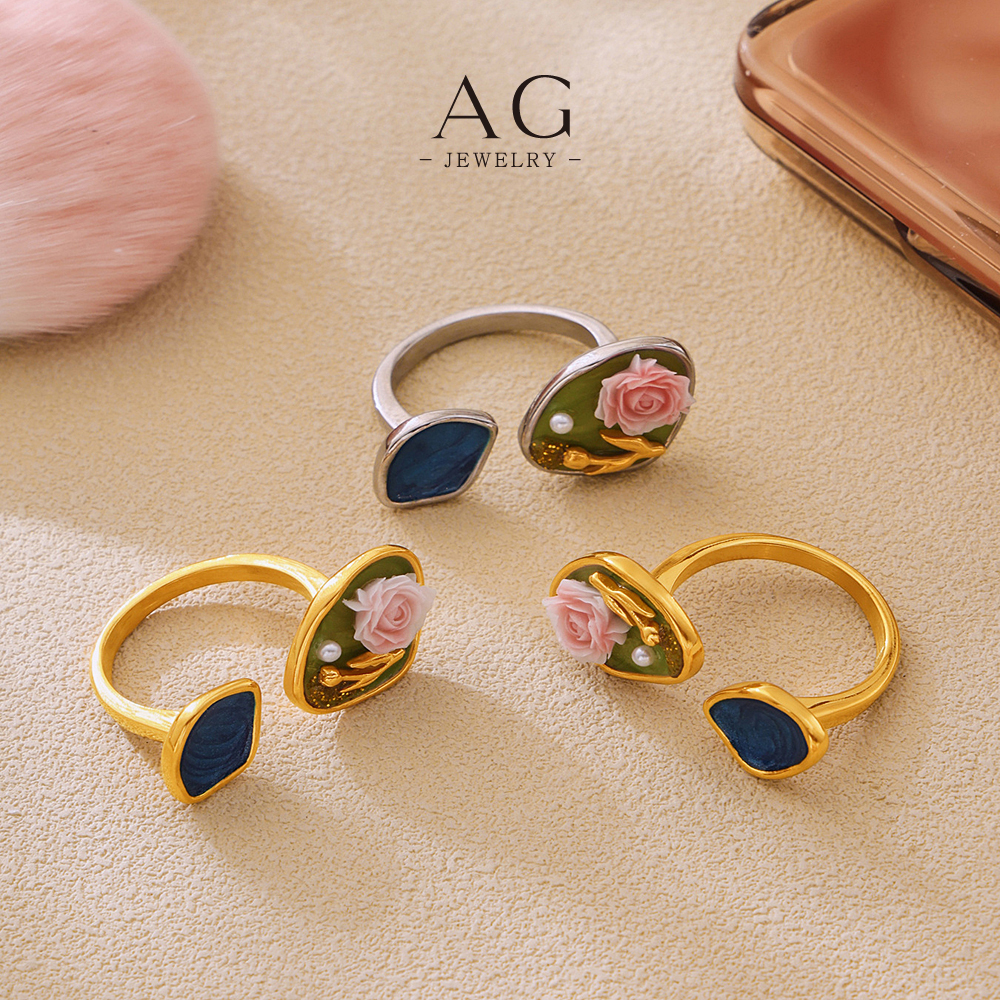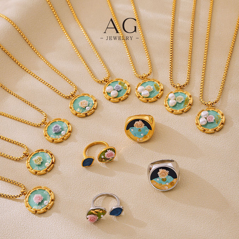 AG Vintage Floral Jewelry Set Necklace Earrings Bracelet Ring Antique Bloom Collection AGTXA246