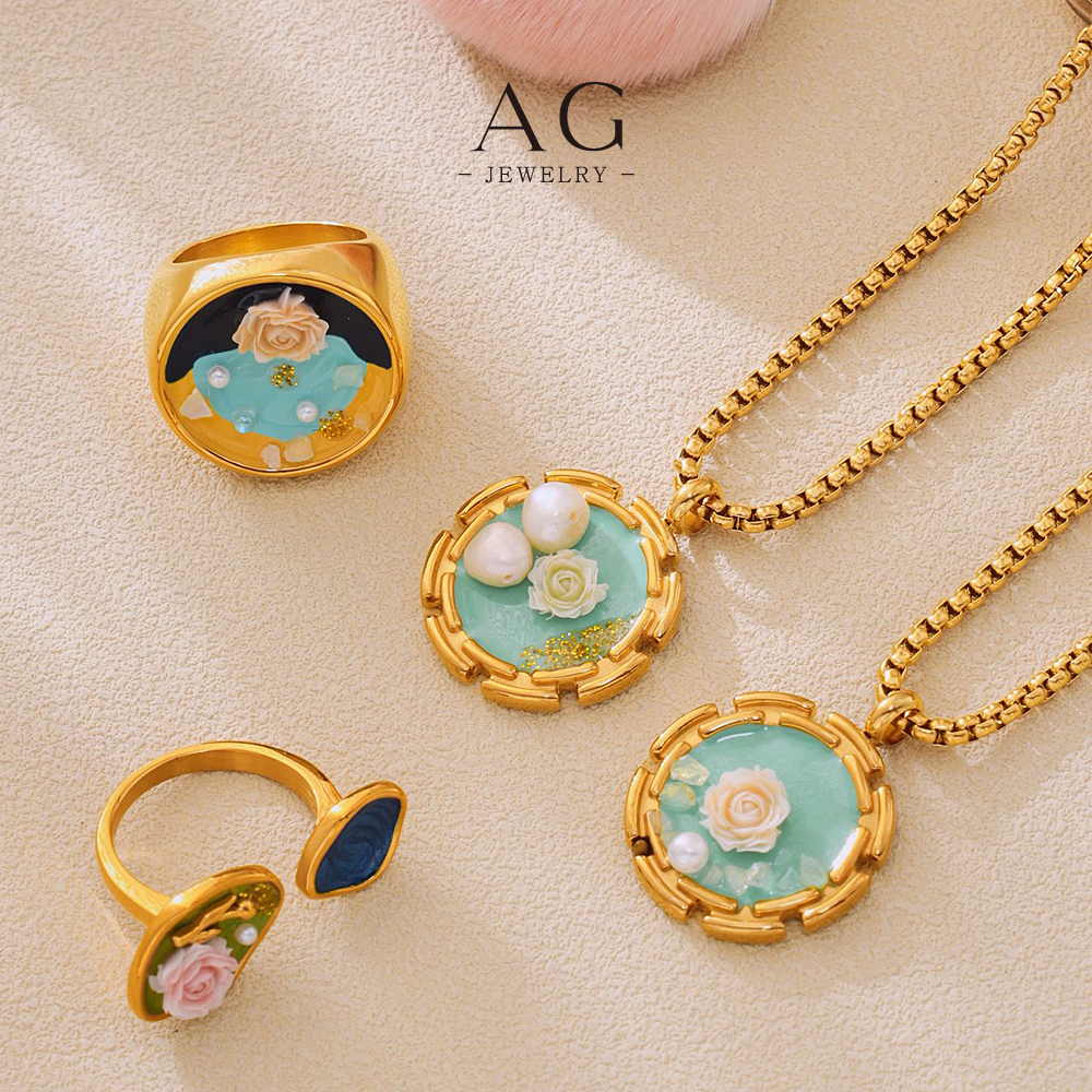 AG Vintage Floral Jewelry Set Necklace Earrings Bracelet Ring Antique Bloom Collection AGTXA245