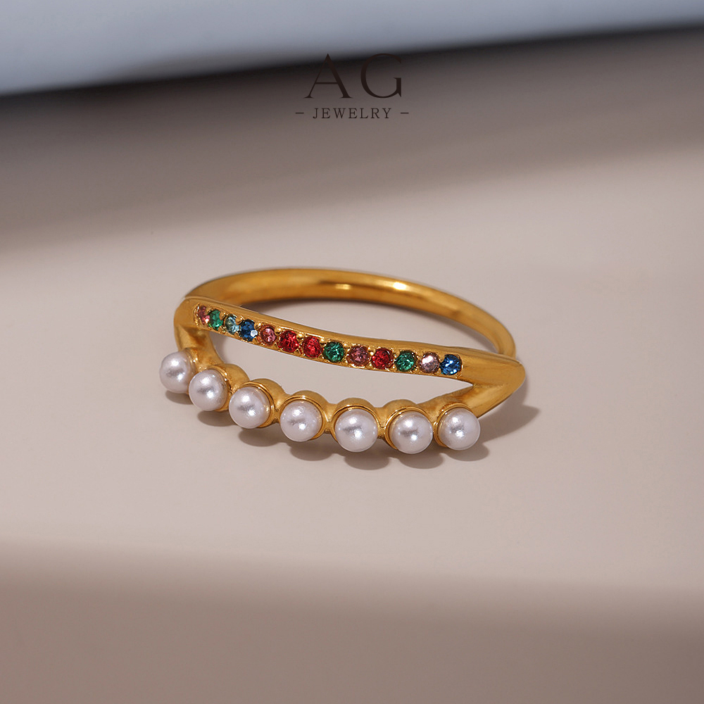 AG Stainless Steel Pearl Zirconia Ring Bridal Wedding Jewelry AGA054