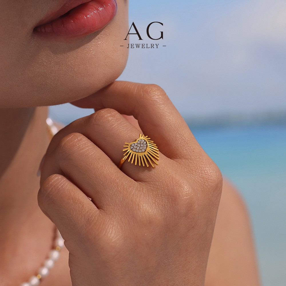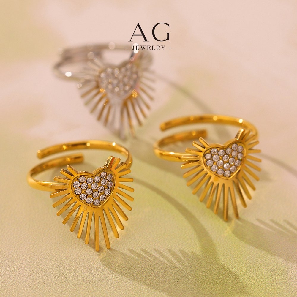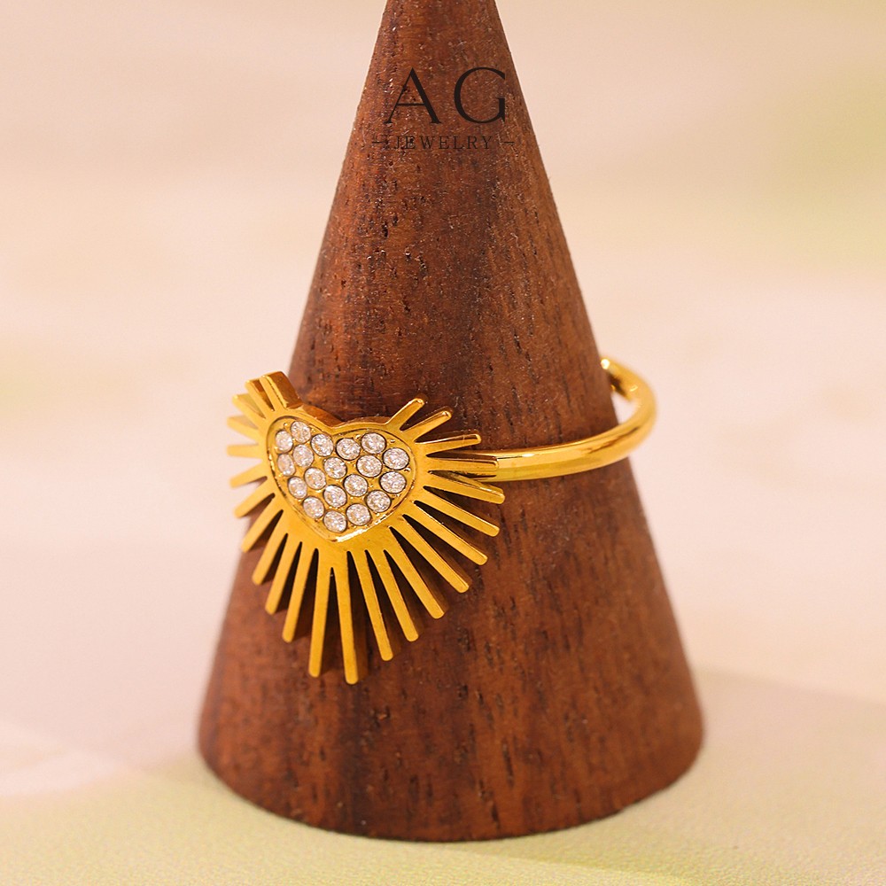 AG Stainless Steel Heart Fan Ring Unique Design Jewelry Custom Manufacturer Small MOQ AGA038