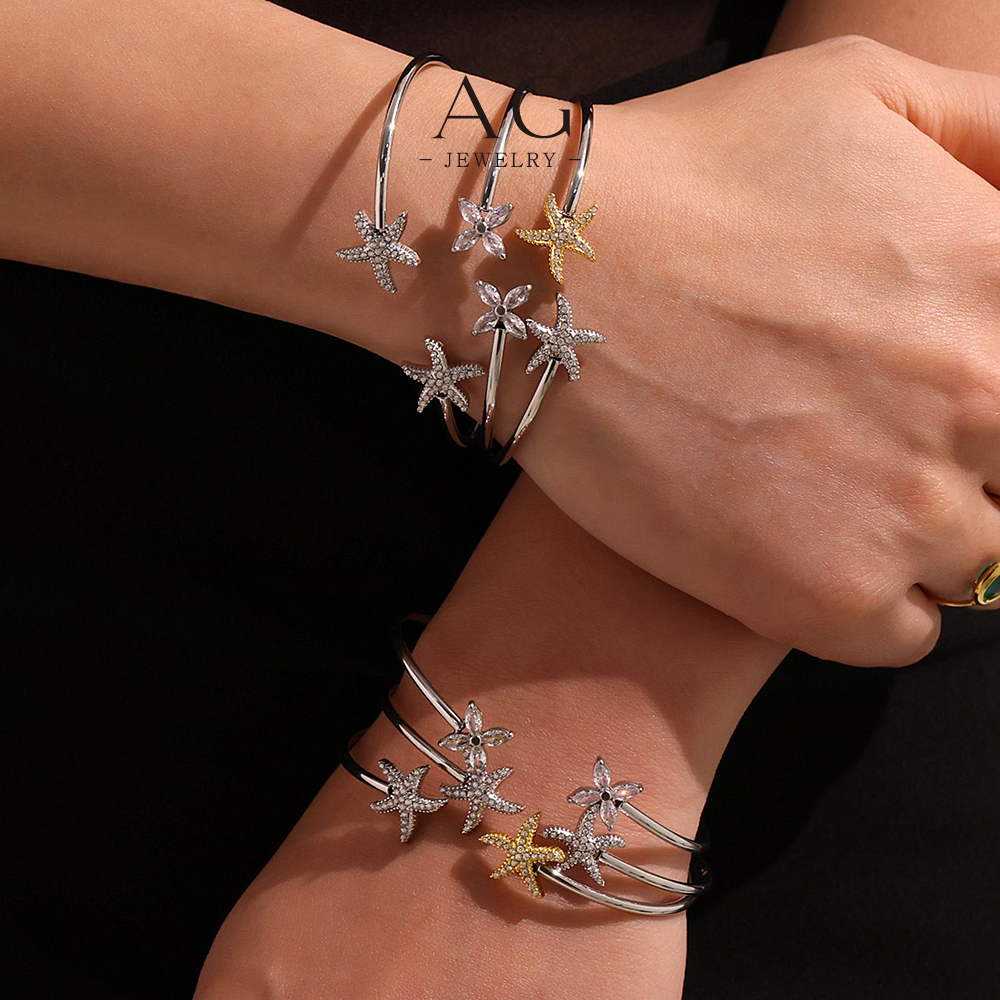 AG Stainless Steel Starfish Charm Bangle Ocean Theme Beach Vacation Jewelry Gift AGZ442