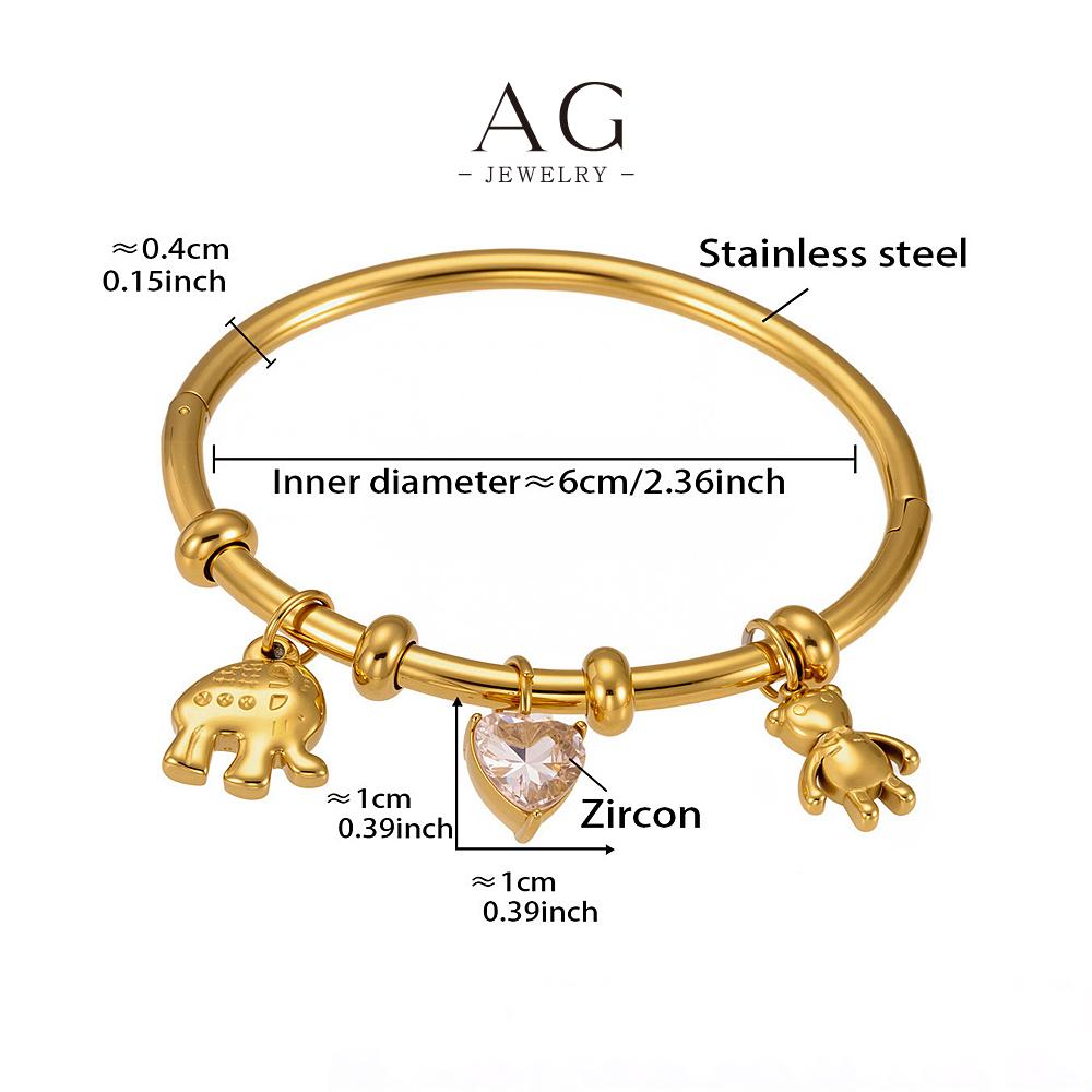 AG Stainless Steel Heart Bear Multi Charm Bracelet Playful Elegant Jewelry AGZ360