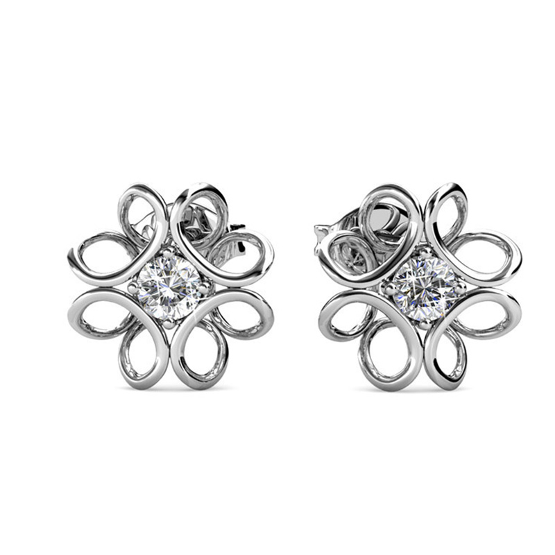 Small MOQ Jewelry Gold Plated Fashion Huggies Earring For Women Vintage Fashion Flower Crystal Earrings