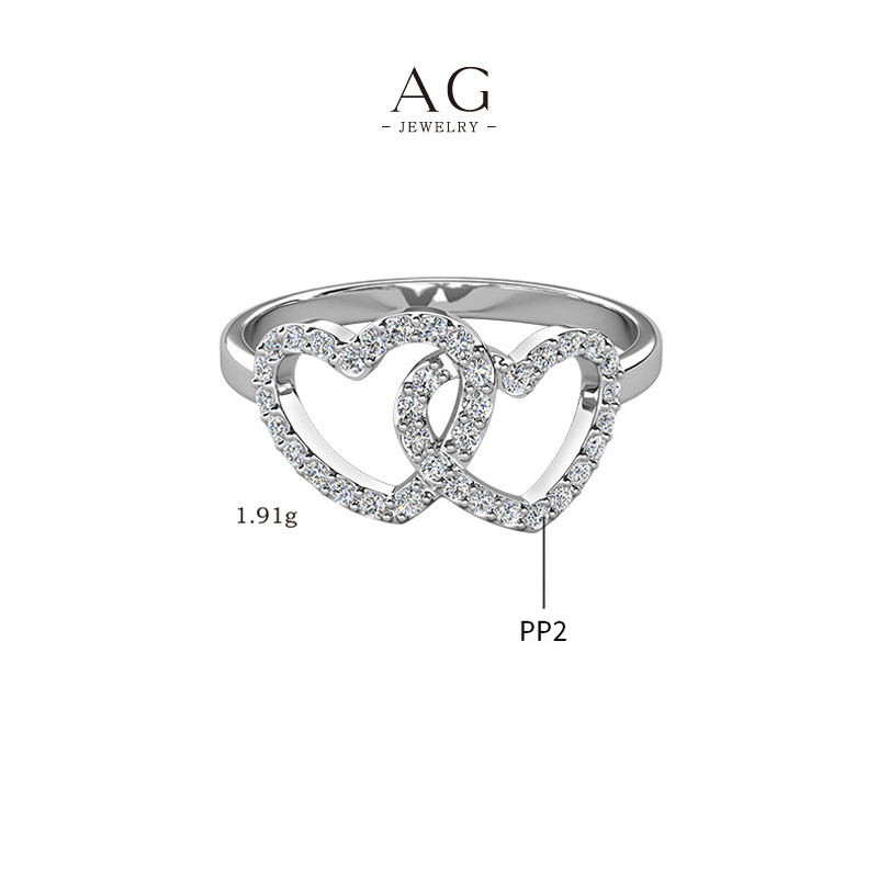 AG Double Heart Ring Couple Matching Jewelry AGDR0161