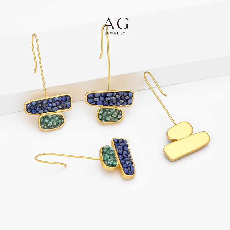 AG Crushed Gemstone Mosaic Earrings Raw Texture Jewelry Line OEM Service AG1794
