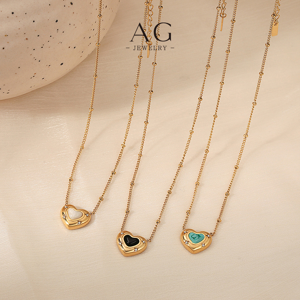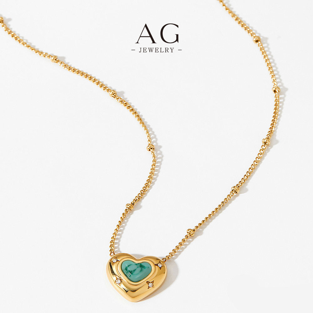 AG Natural Turquoise Carnelian Heart Pendant Necklace Healing Gemstone Jewelry Line Wholesale Supplier AGD1737