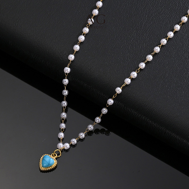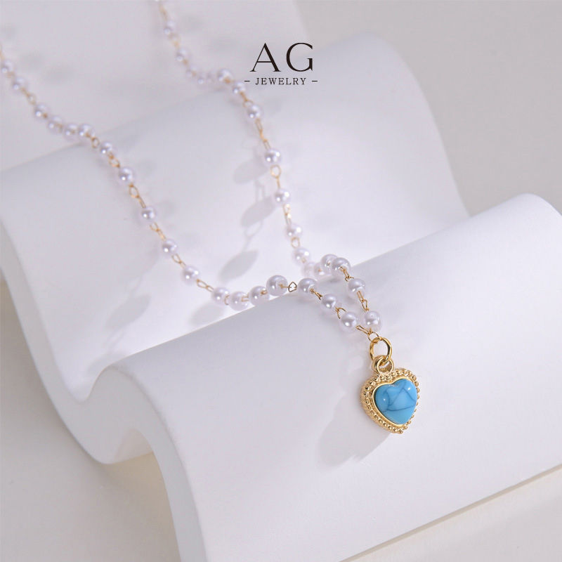 AG Natural Turquoise Pearl Pendant Necklace Earthy Luxury Jewelry Line Wholesale Supplier AGN25314